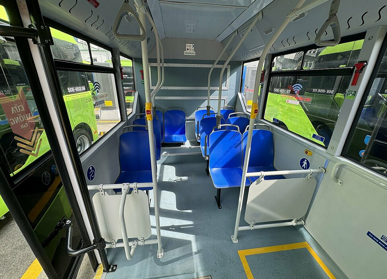 Inside the new electric bus. Photo: Giang Anh |