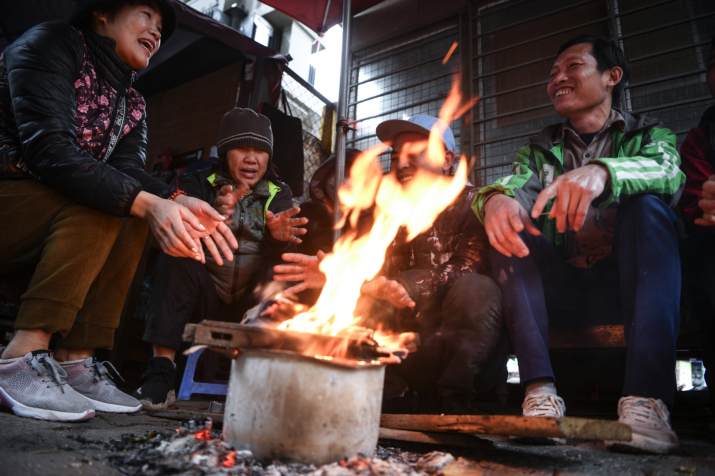Hanoi residents light fires to combat the cold. Photo: Giang Huy |
