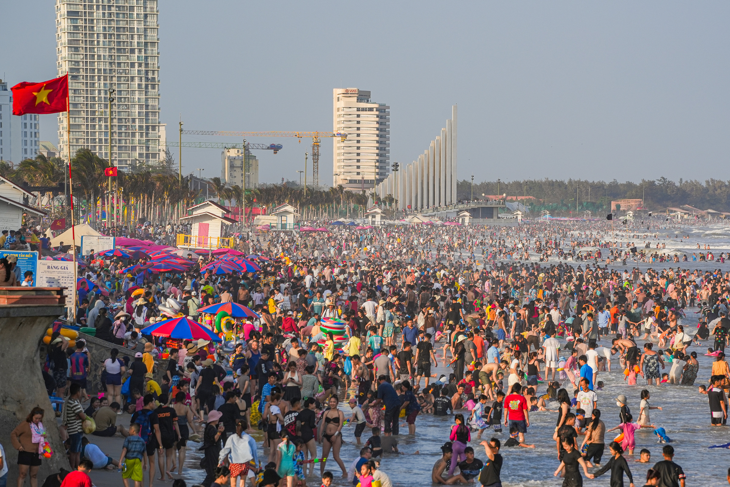 Residents swim at Vung Tau beach, Ho Chi Minh City on the 3rd day of Tet. *Photo: Truong Ha*.