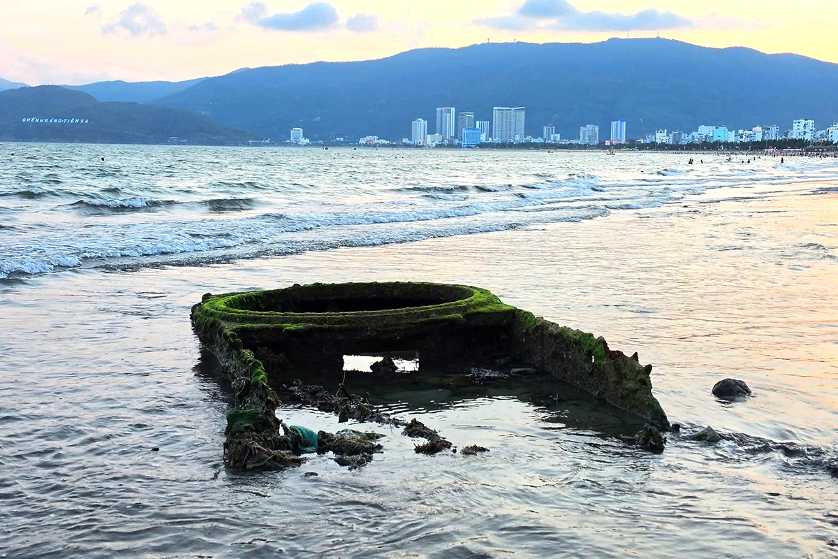"Over a decade ago, I witnessed the salvage of a similar tank in this area," Cuong said, adding that the object's location is in an area popular with swimmers. When the tide rises, slippery moss and sharp metal edges become obscured, potentially posing a danger.
