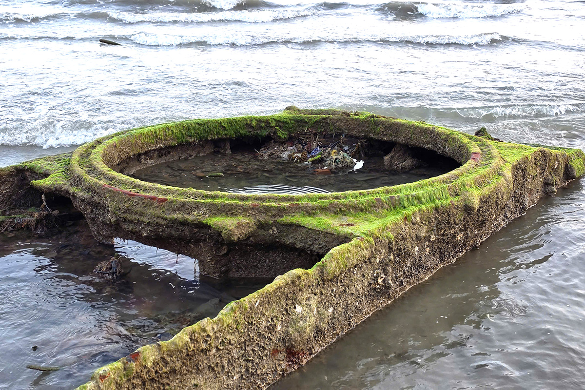 An object suspected to be a tank wreck was revealed as the tide receded. Photo: Quoc Cuong |