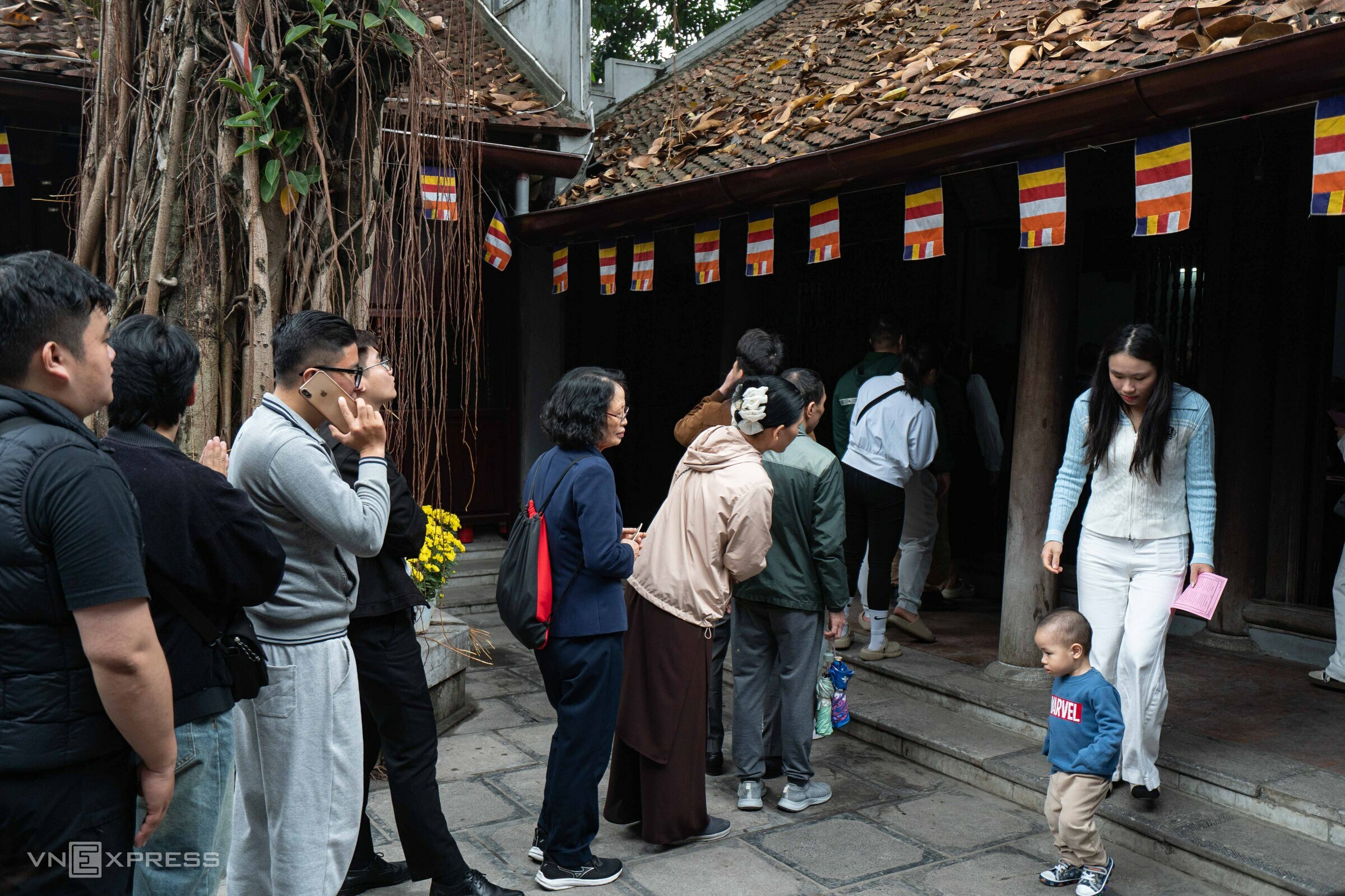 {"caption_all":"Chua Quan Su (Cua Nam ward) is a popular choice for many due to its central location and spacious, well-maintained environment. In 2025, the pagoda will be the third location to welcome the Buddha's Relics within the framework of the United Nations Vesak Grand Celebration.nnPeople offered incense at the one statue in the pagoda, where a wax figure of the Venerable Thich Thanh Tu is displayed. The artwork, created over one year, realistically recreates every detail, such as wrinkles, hand veins, and age spots, making it closely resemble the real person.","caption_items":"["",""]"}