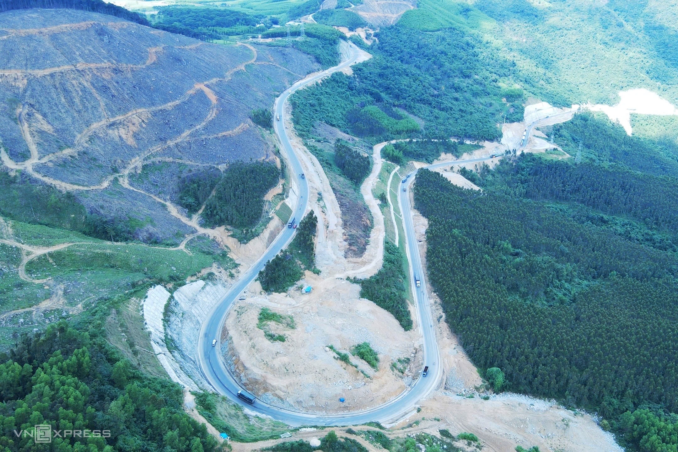 An Khe Pass, 8 km long, is the most dangerous section of national route 19, prone to incidents, especially at night. The route was recently widened from 7 to 9 meters with a 600 billion VND investment. Mountain slopes have been sprayed with concrete, piled, and netted to prevent landslides, but heavy rain still poses a risk.