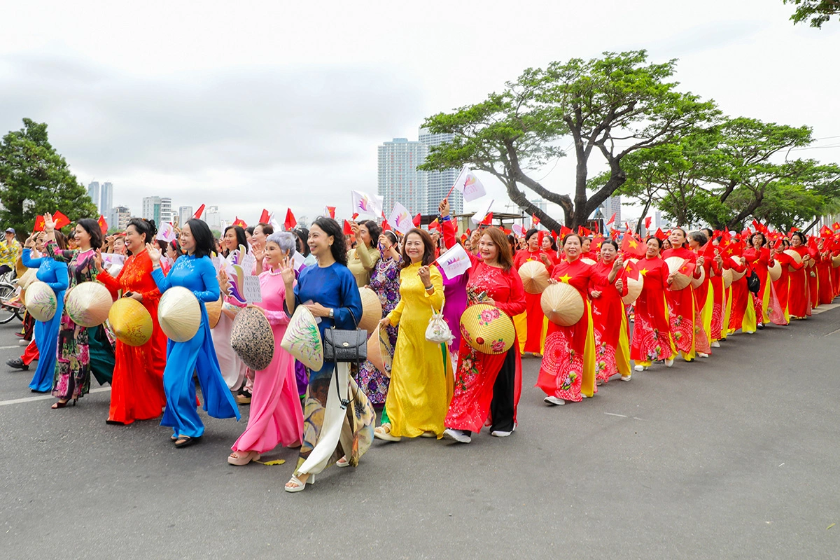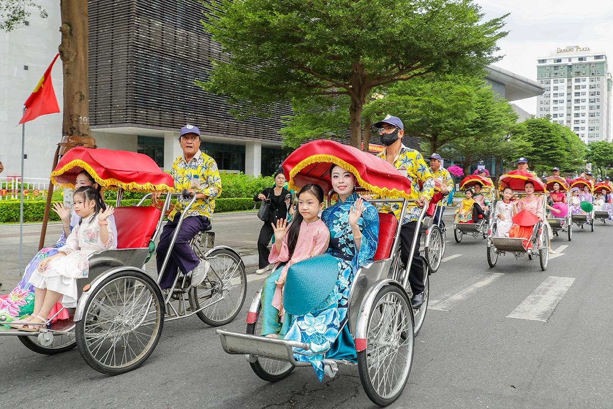 A new feature of this year's program was the intergenerational collaboration. In addition to the women members, the event included 50 models and 50 children from various art clubs. A procession of cyclos carrying ao dai wearers also joined the parade, evoking the cultural ambiance of the past within the modern city.