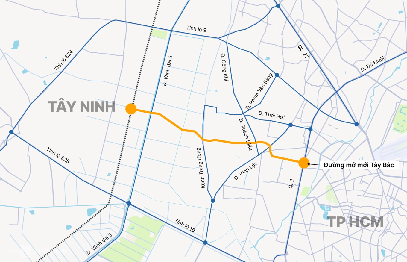 The route, outlined in a pre-feasibility study submitted by the Department of Construction to the People's Committee of TP HCM, will begin at Ring Road 2 in Binh Tan ward. Its terminus will border Tay Ninh (formerly Long An), aligning with the starting point of the DT.823D project in that province.