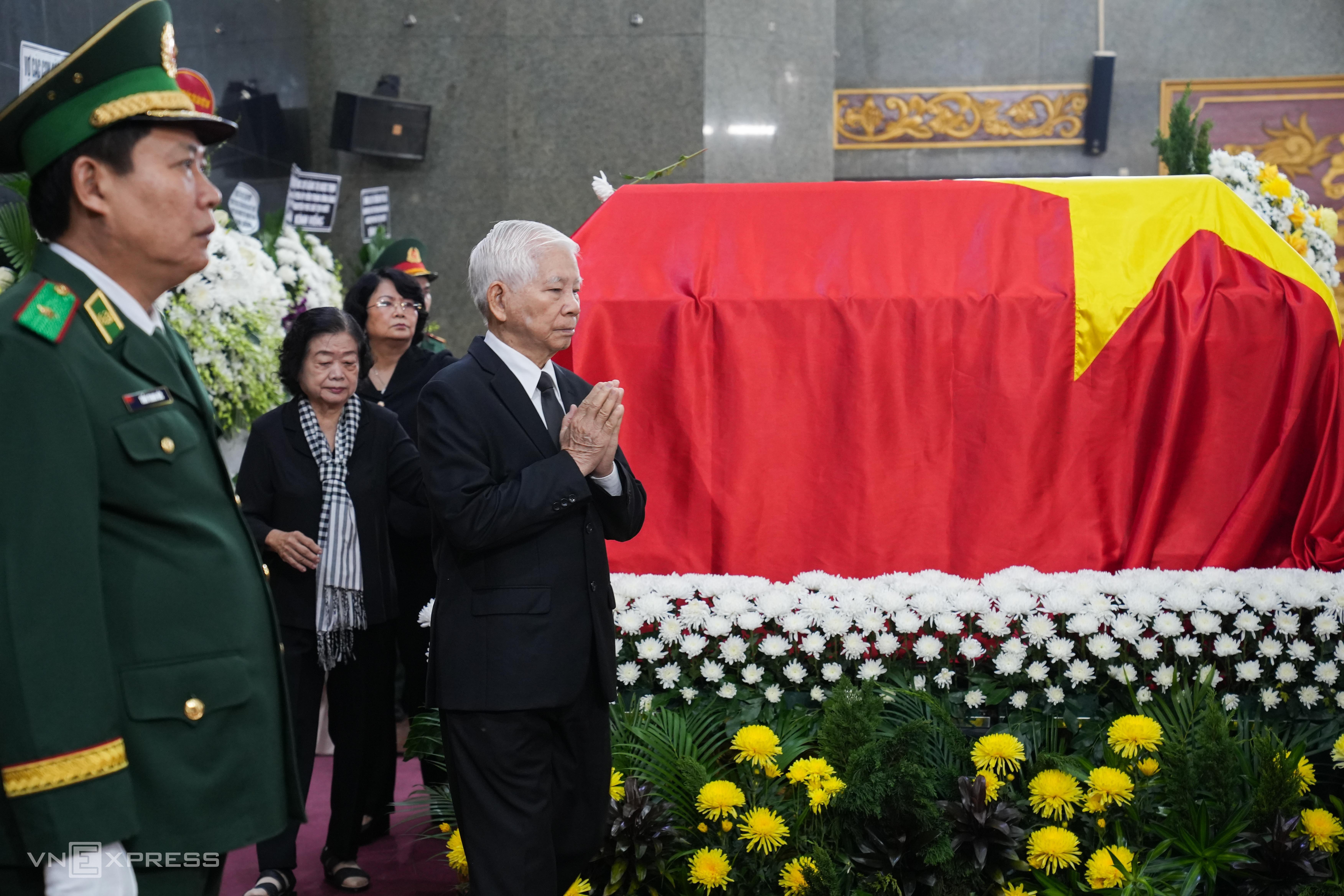 Deputy Prime Minister Mai Van Chinh and former Prime Minister Nguyen Tan Dung lit incense and circled General Le Van Dung's coffin.