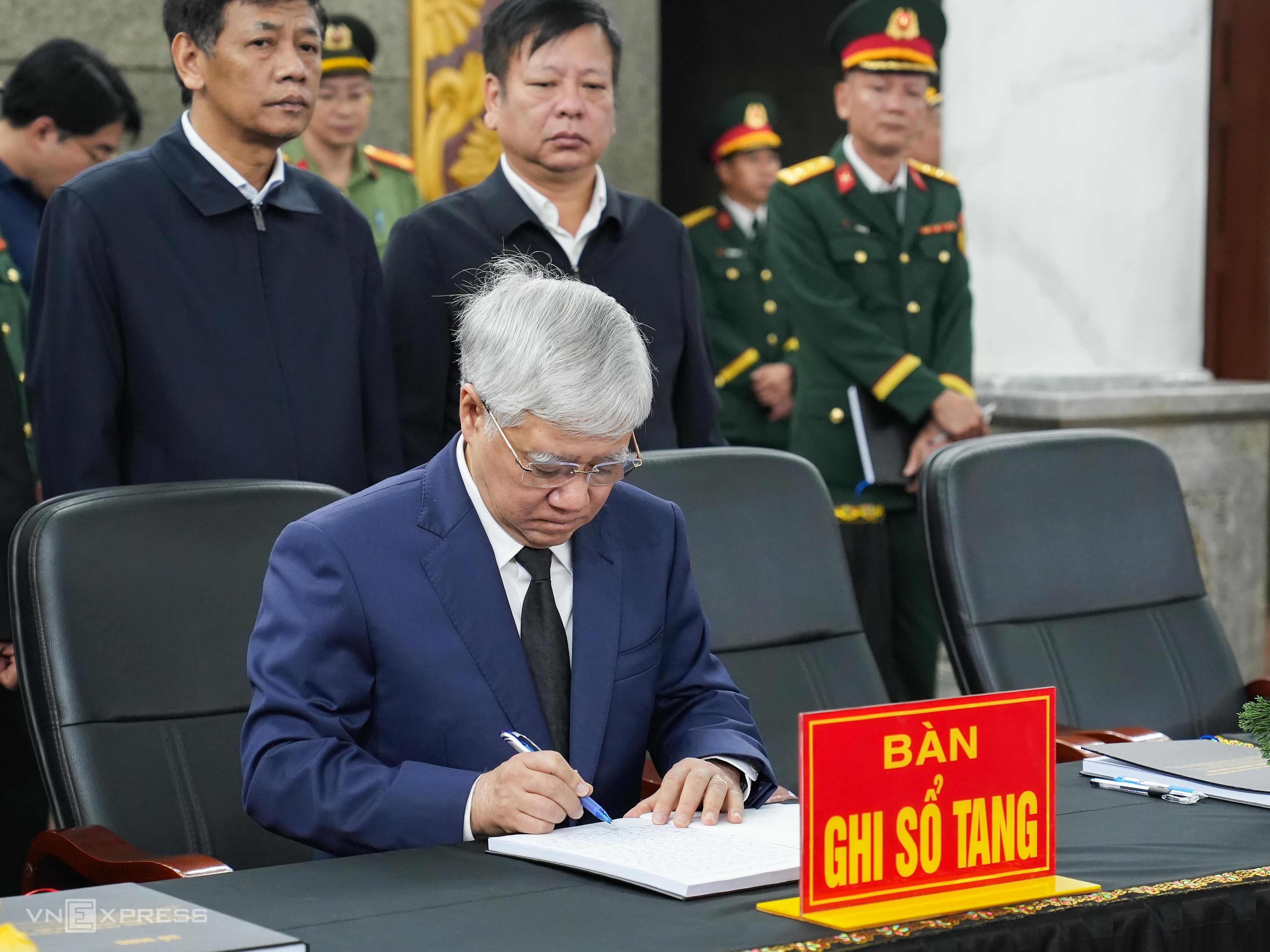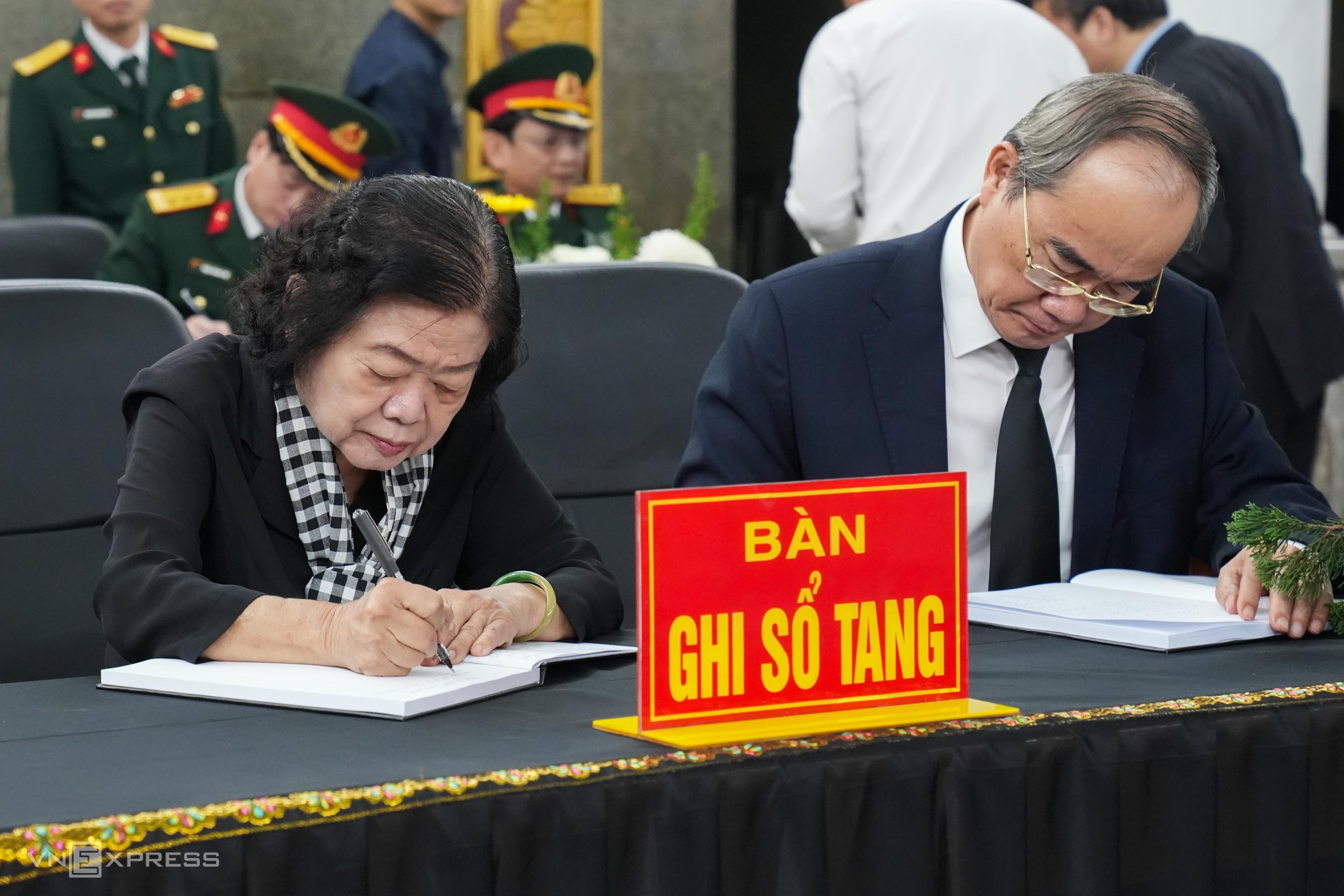 Truong My Hoa (former Vice President) and Nguyen Thien Nhan (former Secretary of the TP HCM Party Committee) signed the condolence book.