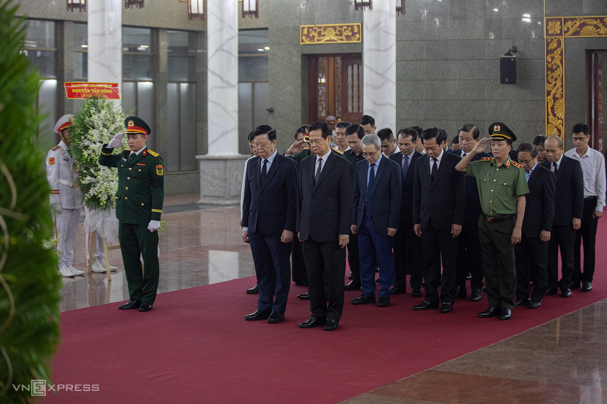 A government delegation, led by Deputy Prime Minister Mai Van Chinh and former Prime Minister Nguyen Tan Dung, paid their respects to the general and offered condolences to his family.