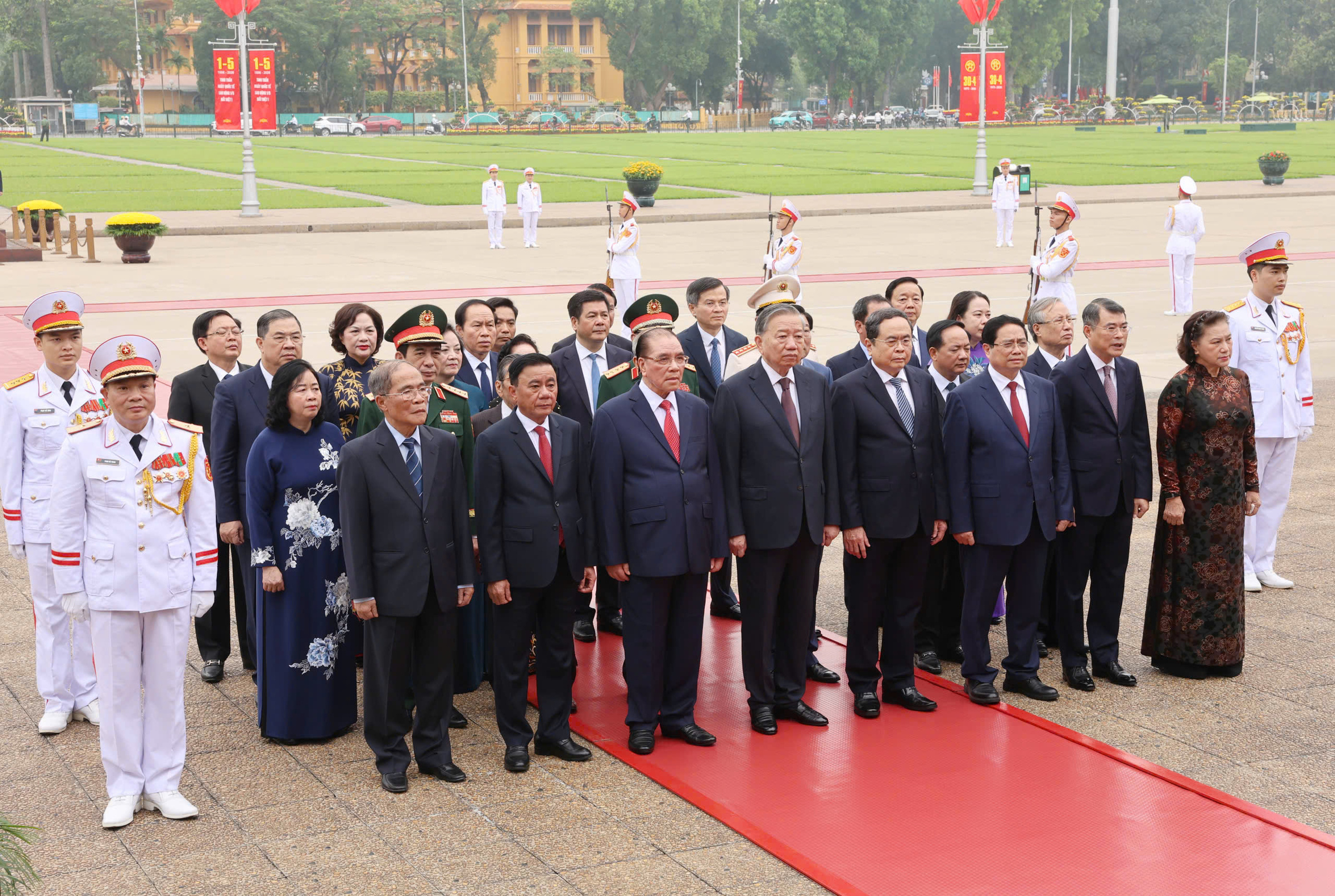 General Secretary and President To Lam, along with Party and state leaders, paid respects at President Ho Chi Minh Mausoleum on the morning of 28/4. Photo: Hoang Phong |