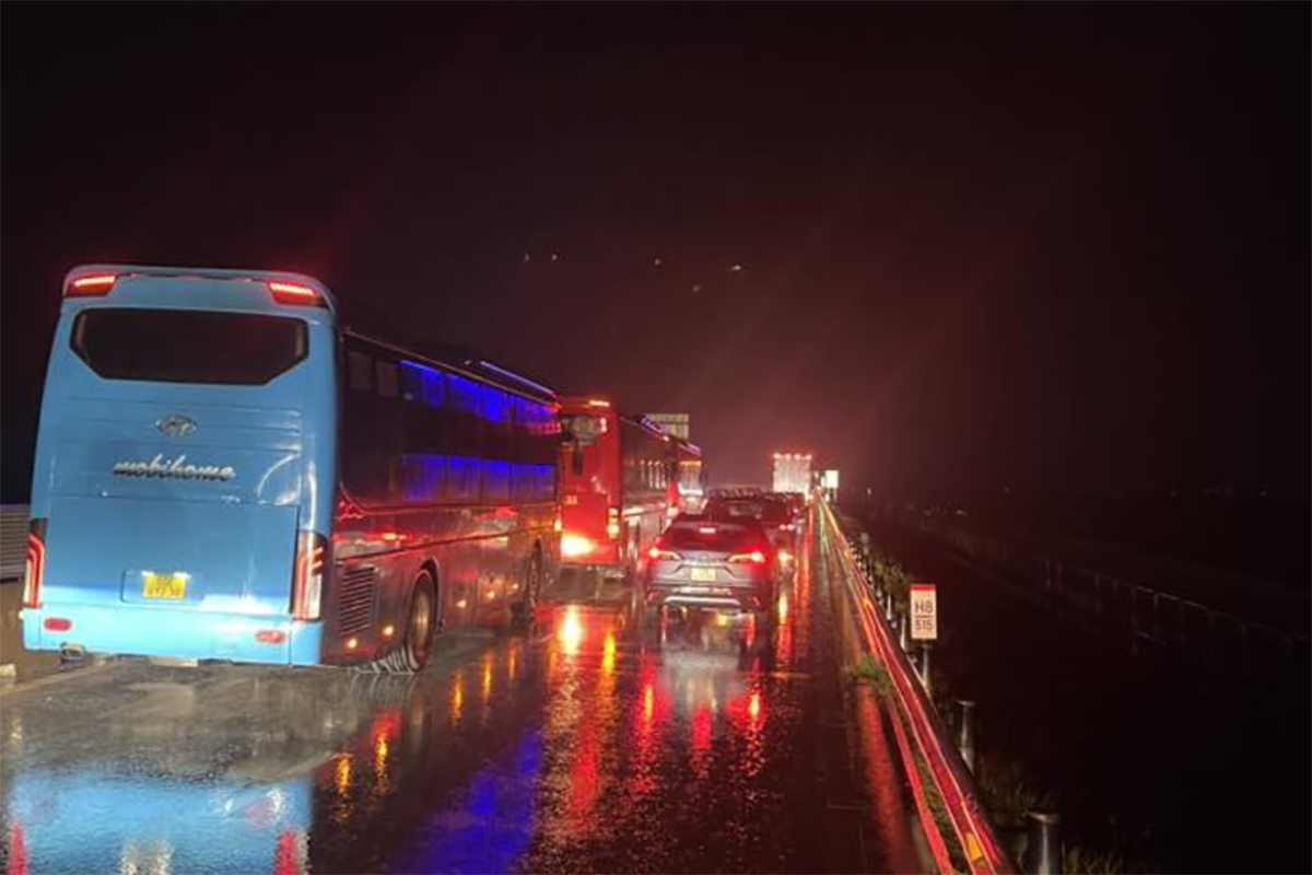 The expressway was jammed for over two hours after the accident. Photo: Duong Nam.