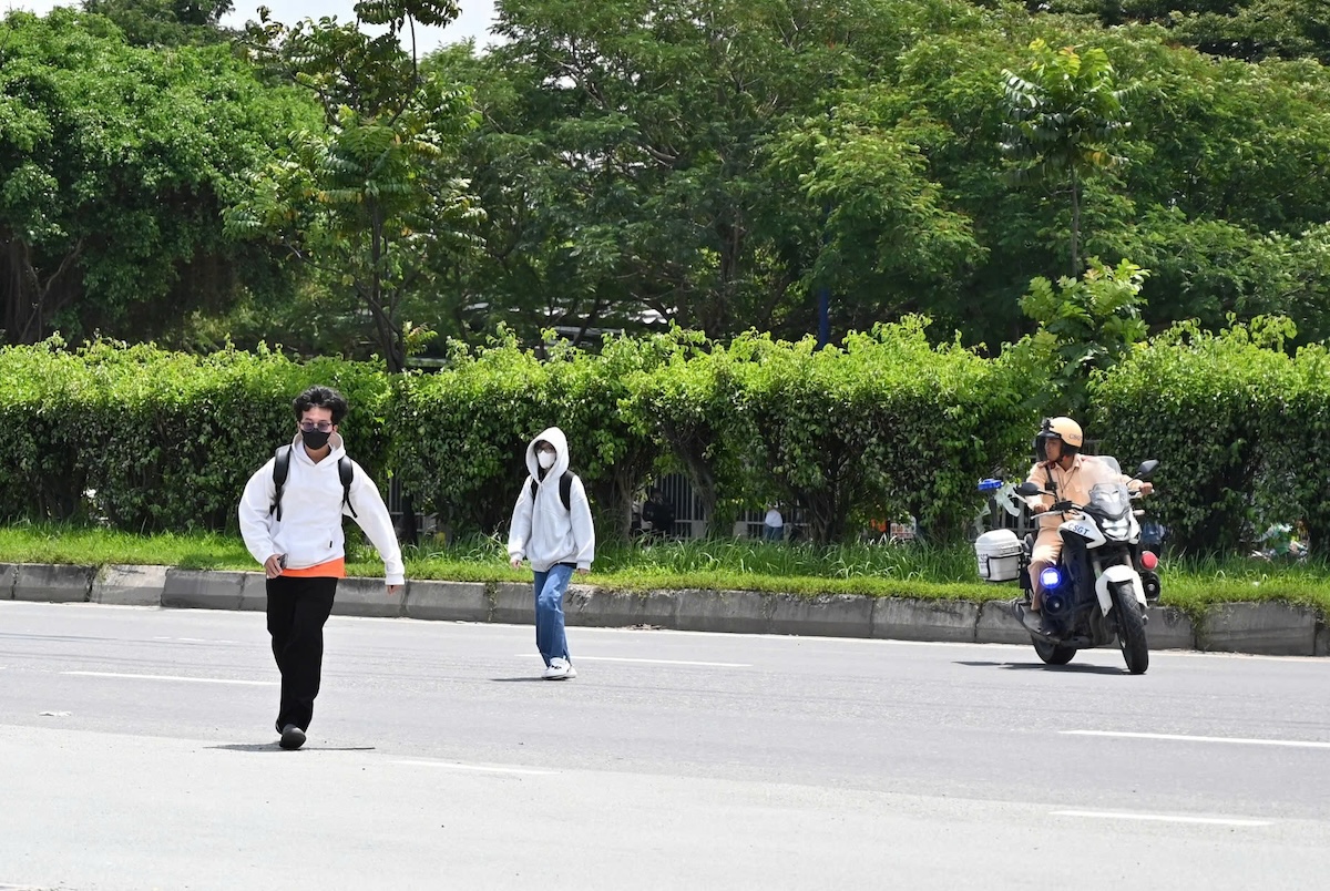 A 21-year-old student, stopped by traffic police for jaywalking, explained that the bus stop was directly across from the university. He admitted to crossing the 20-meter stretch of road to avoid the longer walk to the pedestrian bridge. "I crossed the road like that to avoid walking in the hot sun, even though I knew it was a violation," the student said.