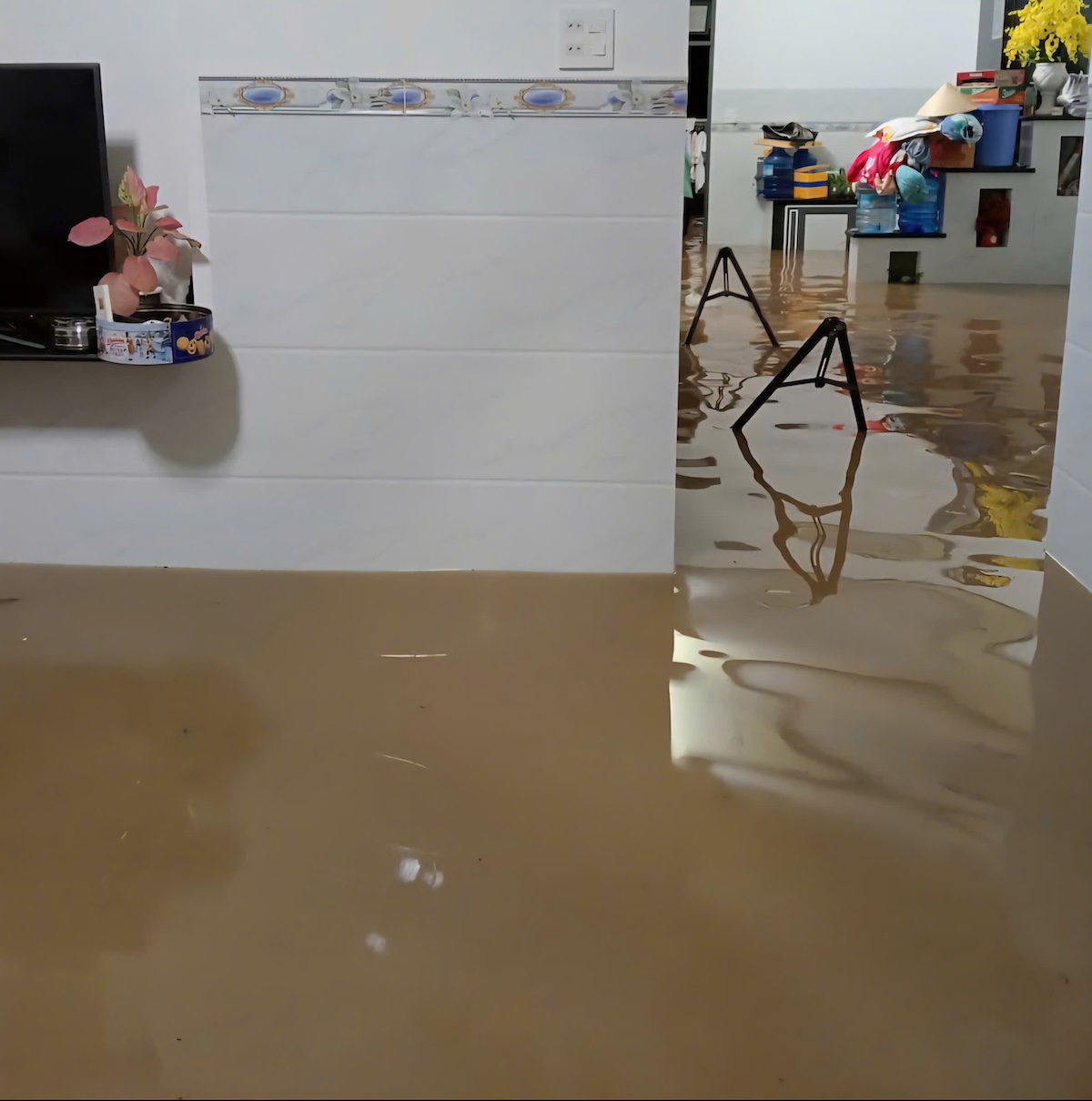 By 9 p.m., homes were deeply submerged. Bich Loc, 35, reported that water from the street flowed into her yard, reaching half a meter deep in her living room by 10 p.m. Many belongings and furniture, despite being elevated, were submerged. Loc, along with her 60-year-old parents and two children aged 3-6, had to move upstairs for shelter. Concerned about the water continuing to rise, she called for assistance, stating, "My house is isolated, the water is rising, power is out, and we've lost contact; I don't know what will happen."