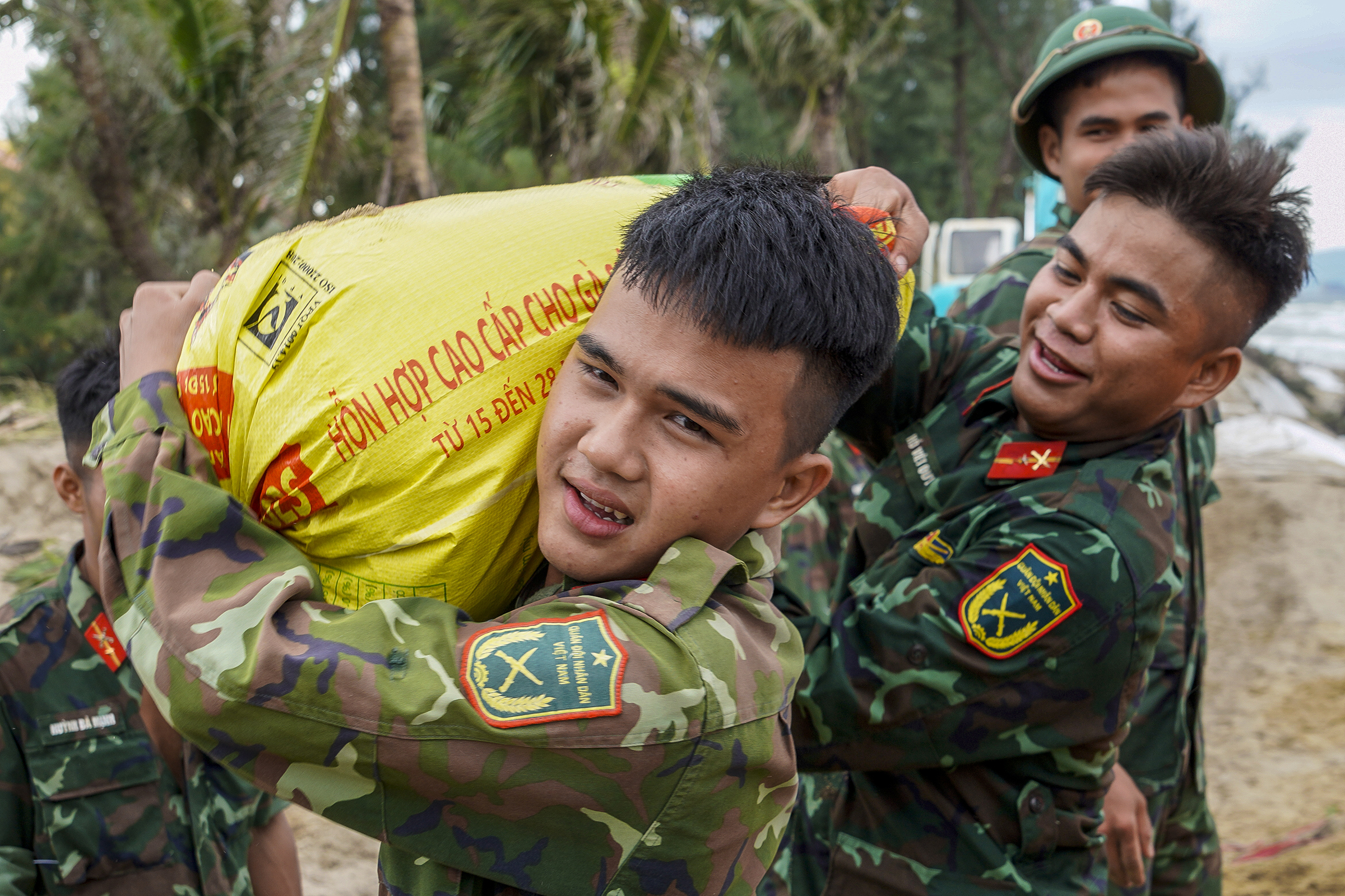 Soldiers assist in addressing coastal erosion in Hoi An, Da Nang city, 4/11. Photo: Nguyen Dong