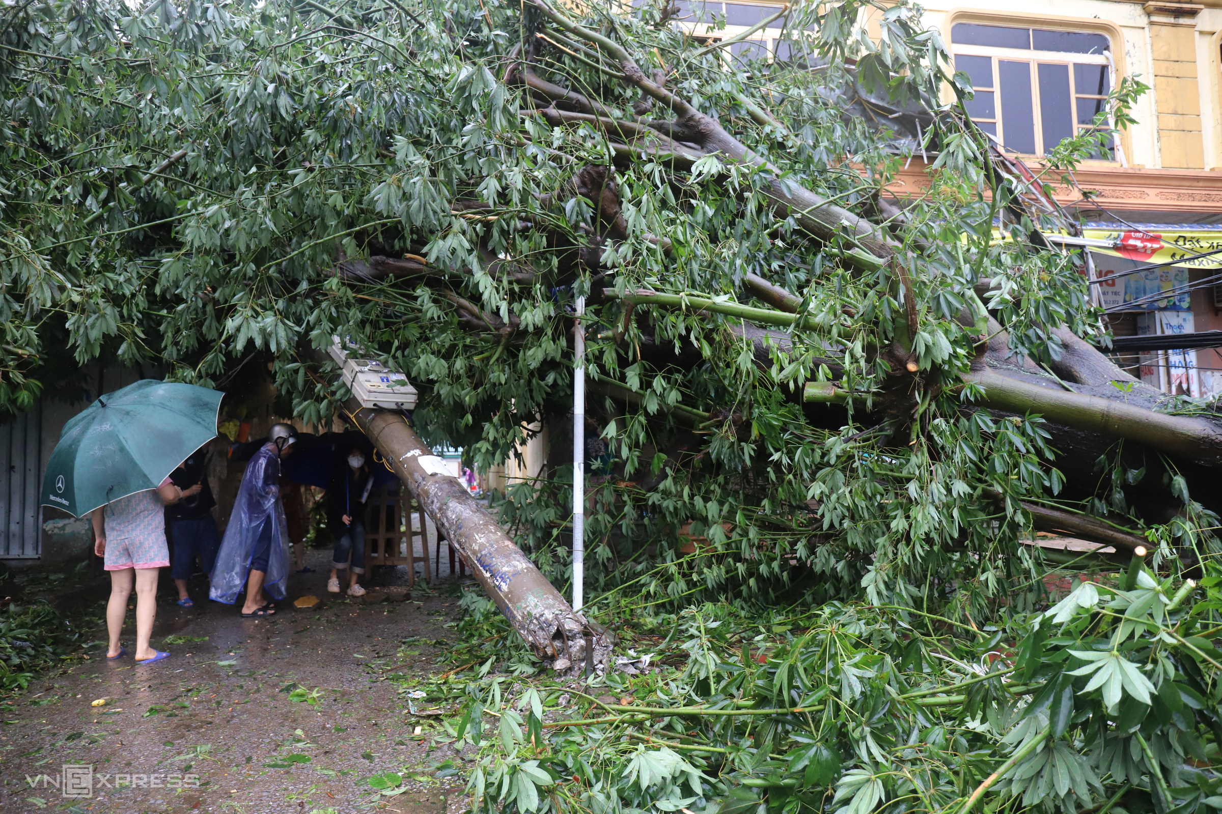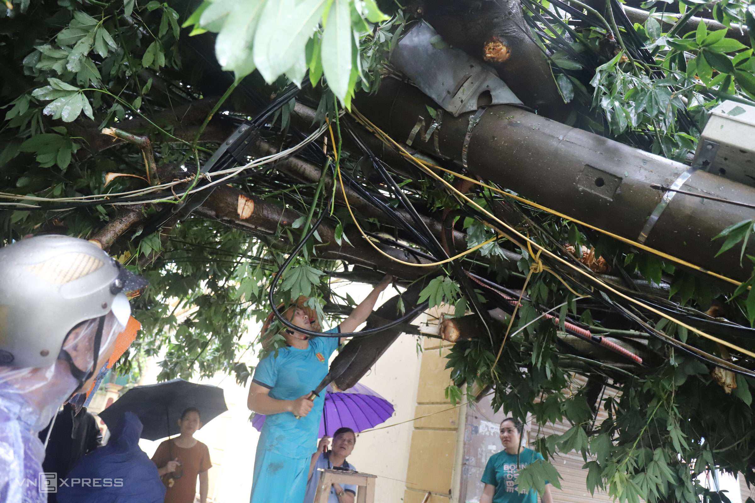 In some narrow alleys, fallen trees and power poles completely blocked access. Residents had to use knives to cut branches to get out.