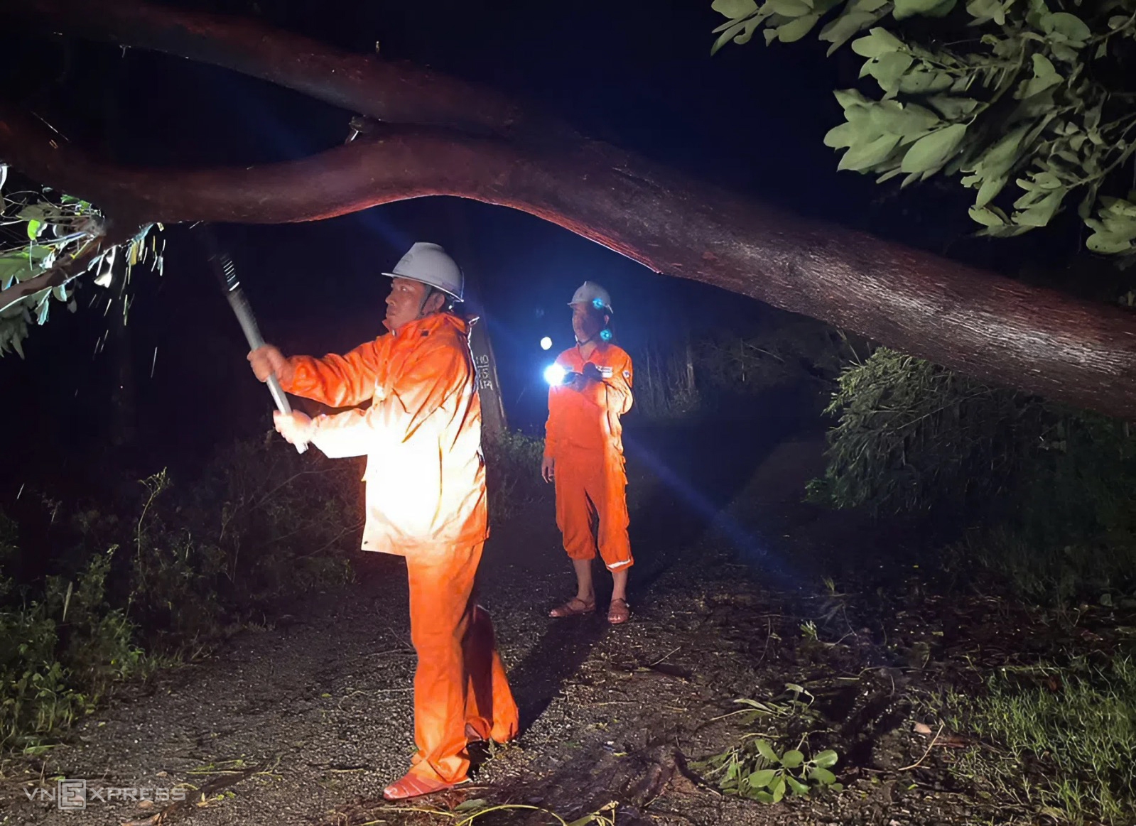 On the night of 25/8, Ha Tinh Power Company mobilized all its personnel to address the damage caused by the typhoon. By 2 a.m. on 26/8, power had been restored to about 90% of customers in the center of Thanh Sen ward and key government offices, including the provincial Party Committee and People's Committee. Photo: Duc Hung