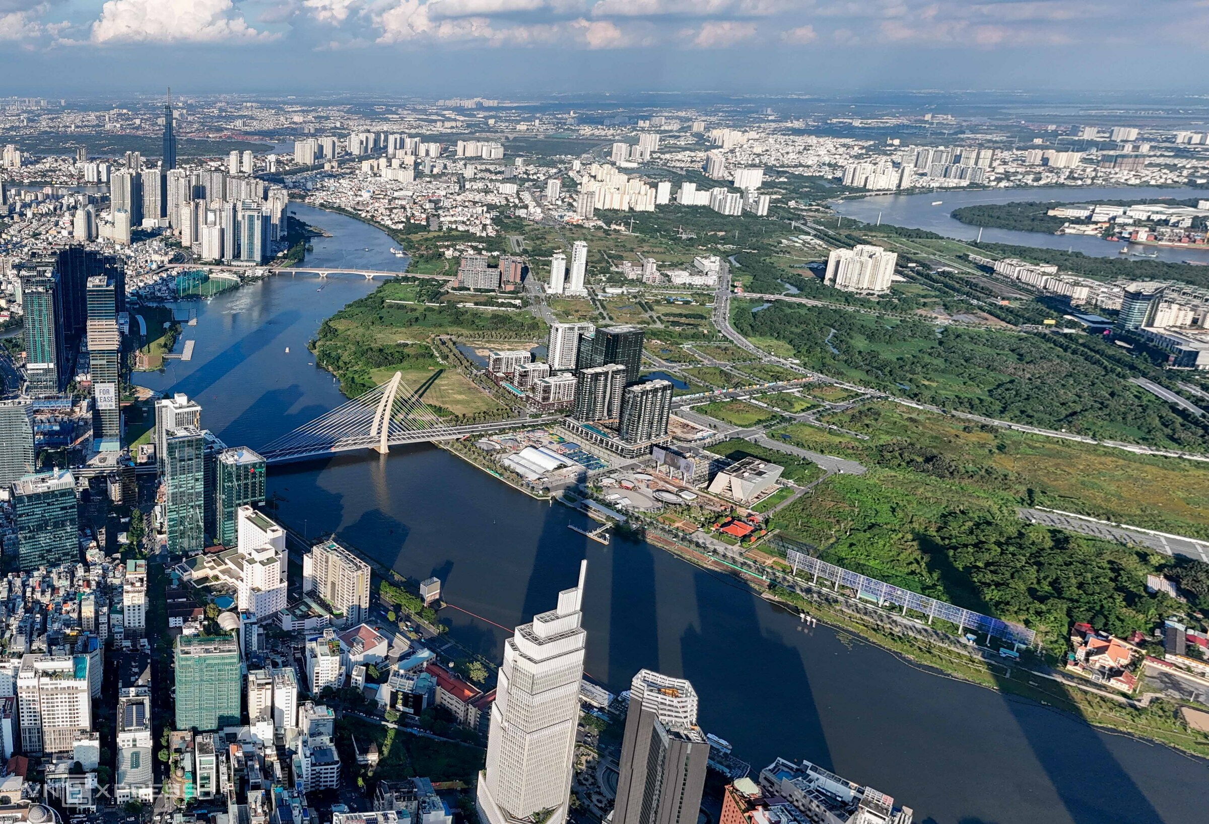 A section of the Saigon River from Ba Son bridge to Thu Thiem bridge, October 2024. Photo: Quynh Tran |