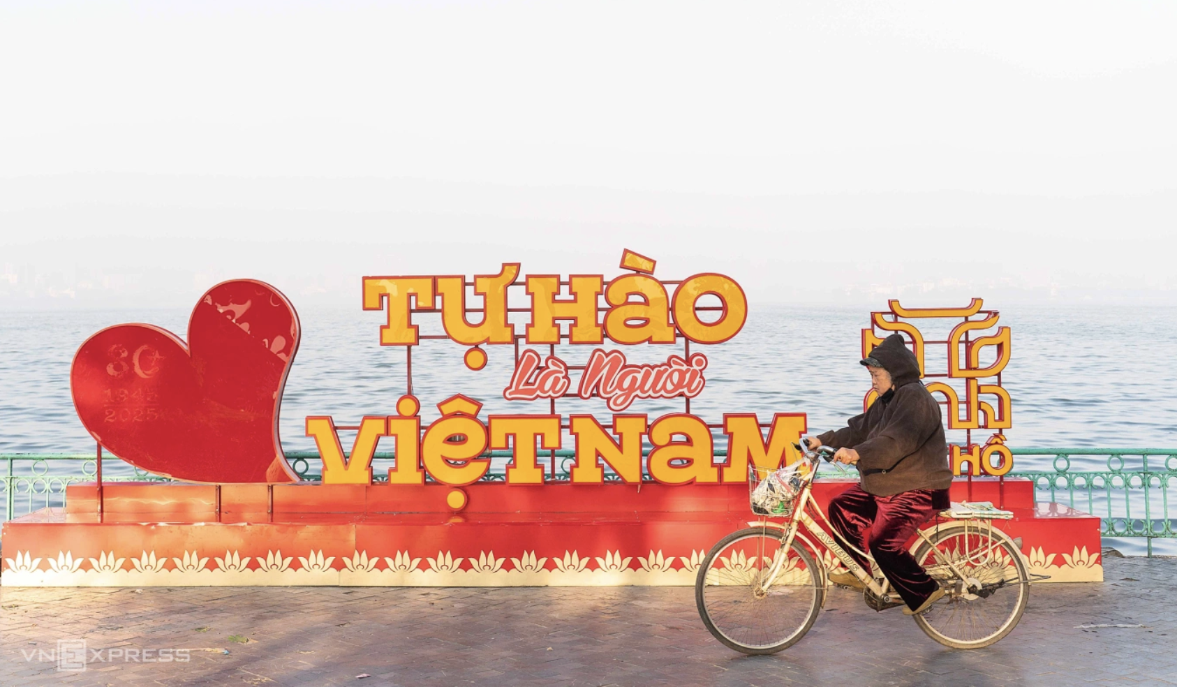 Elderly residents of Hanoi cycle along West Lake. Photo: Hoang Giang.