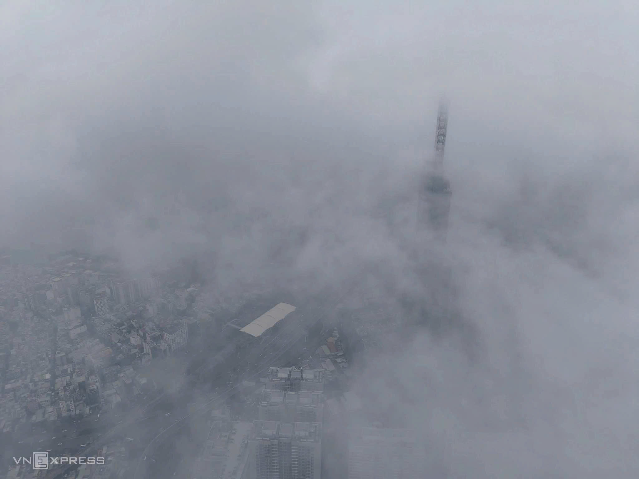 A white haze covers buildings and residential areas, viewed from Landmark 81 towards downtown Ho Chi Minh City late last year. *Thanh Tung*