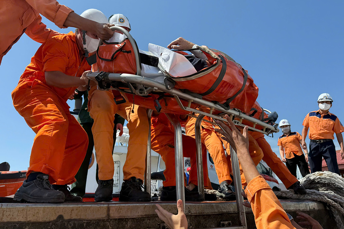 At 12:00 on the same day, the vessel docked, and the patient was handed over to authorities and immediately transferred to Vinmec Da Nang Hospital for continued emergency treatment.