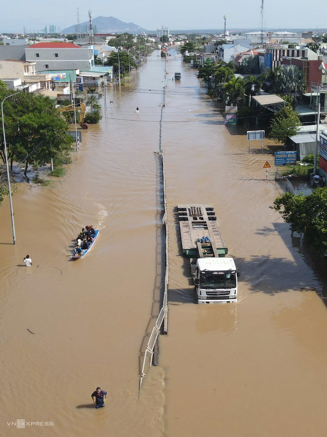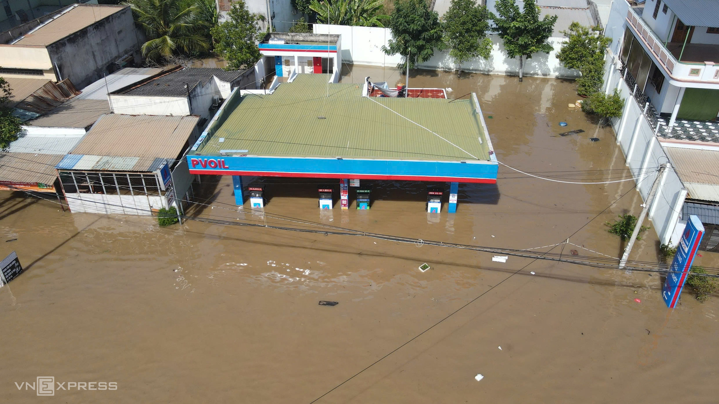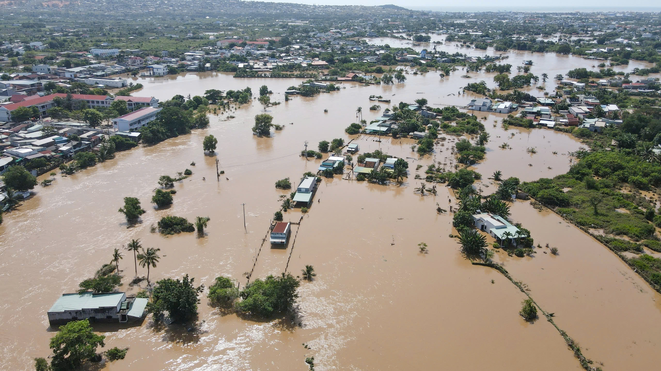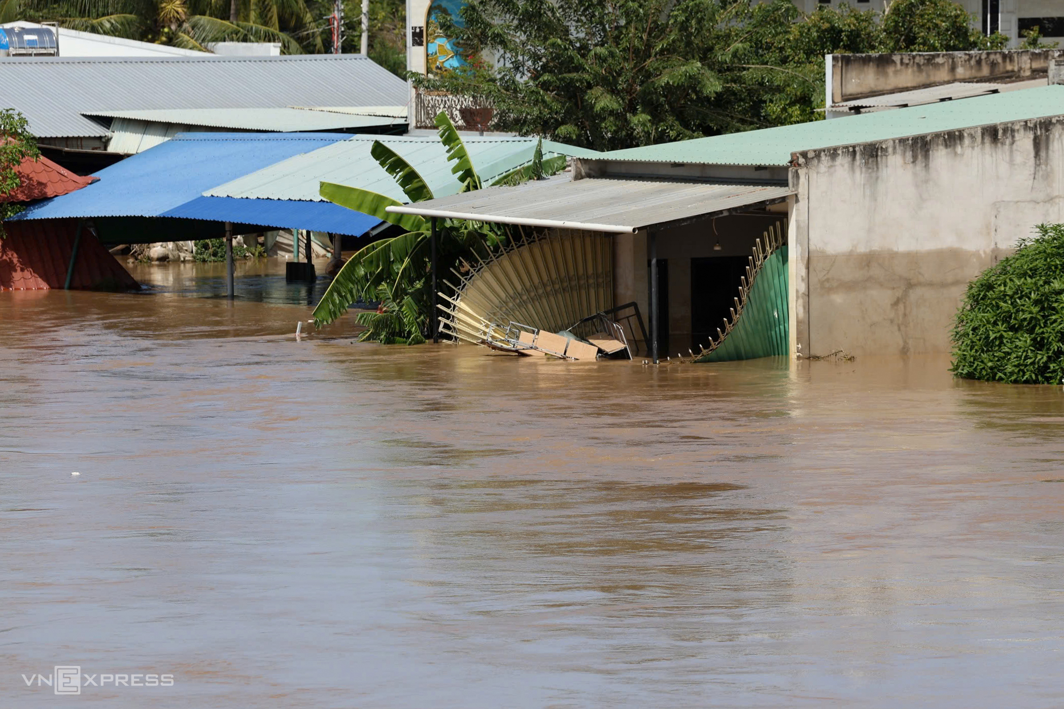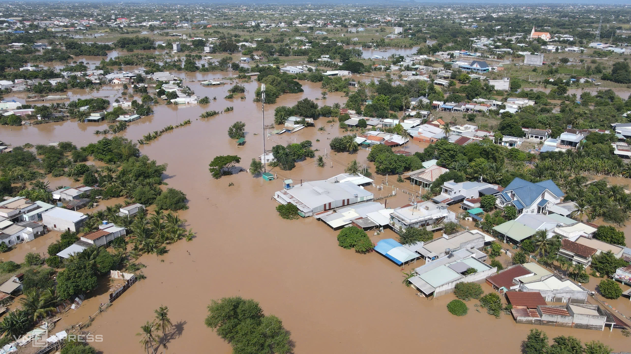 On the morning of 5/12, hundreds of homes in Ham Thang ward were submerged in floodwaters. This area is just one bridge away from Phan Thiet.