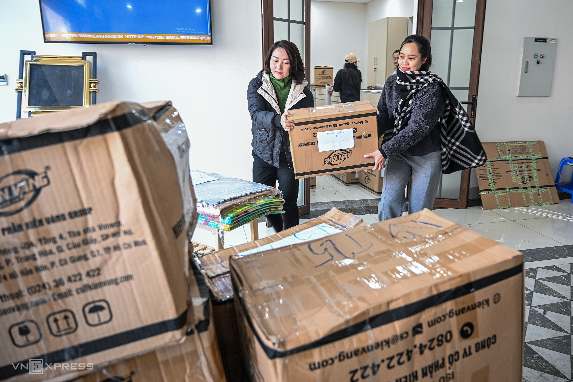 Employees at Hanoi Power Corporation pack items for relocation to their new headquarters.