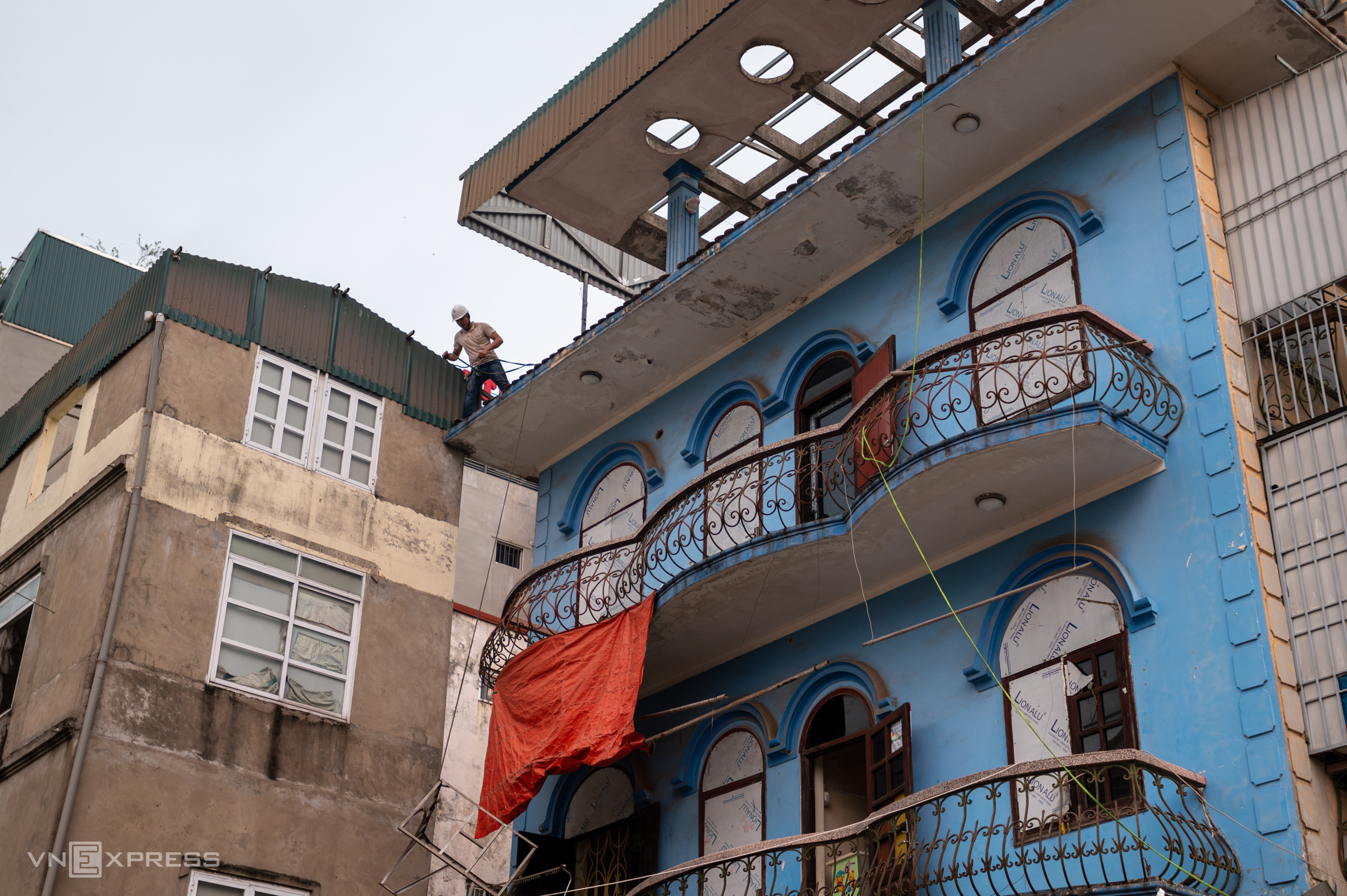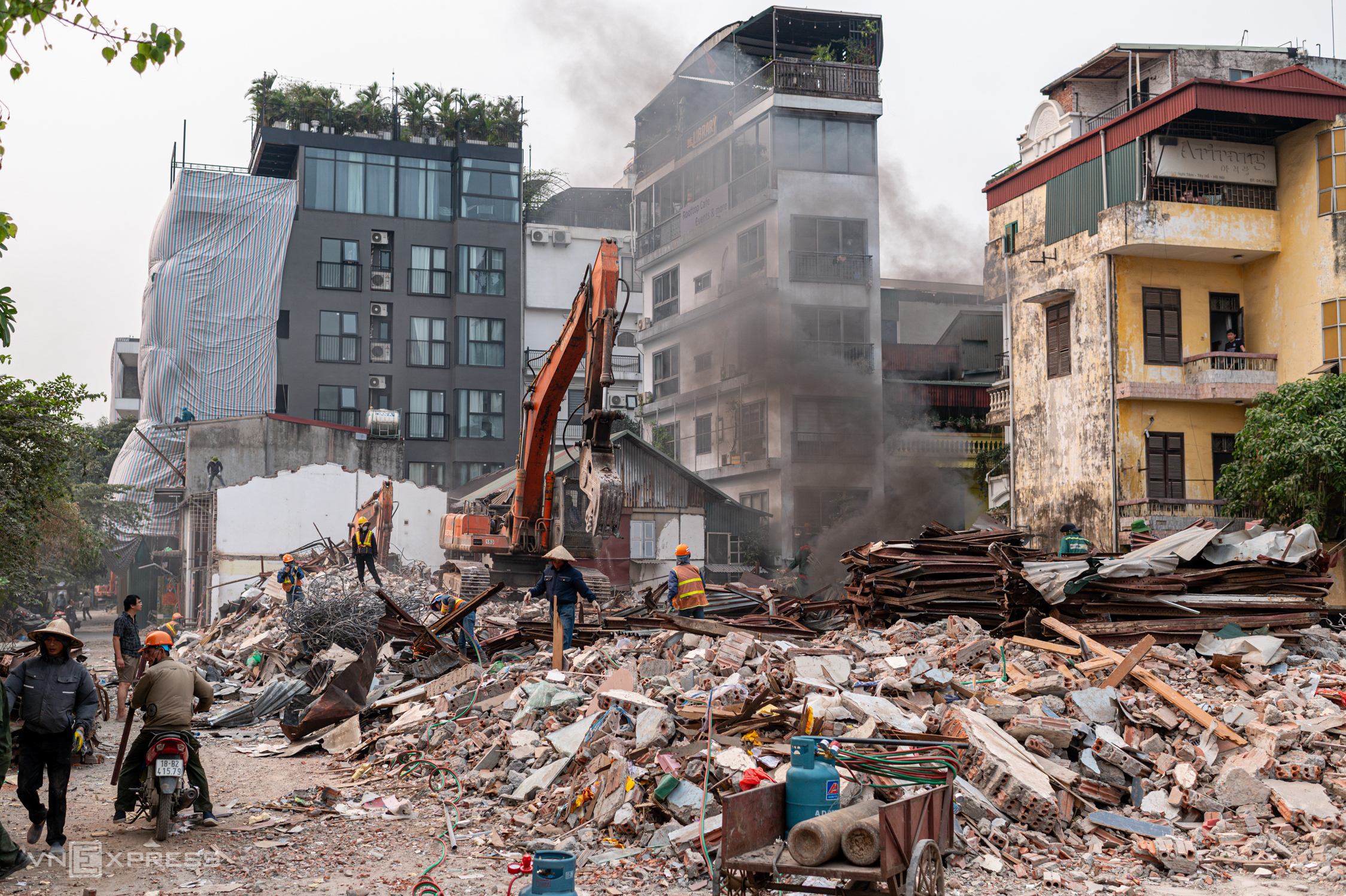A three-story house in alley 310 Nghi Tam is currently being dismantled.