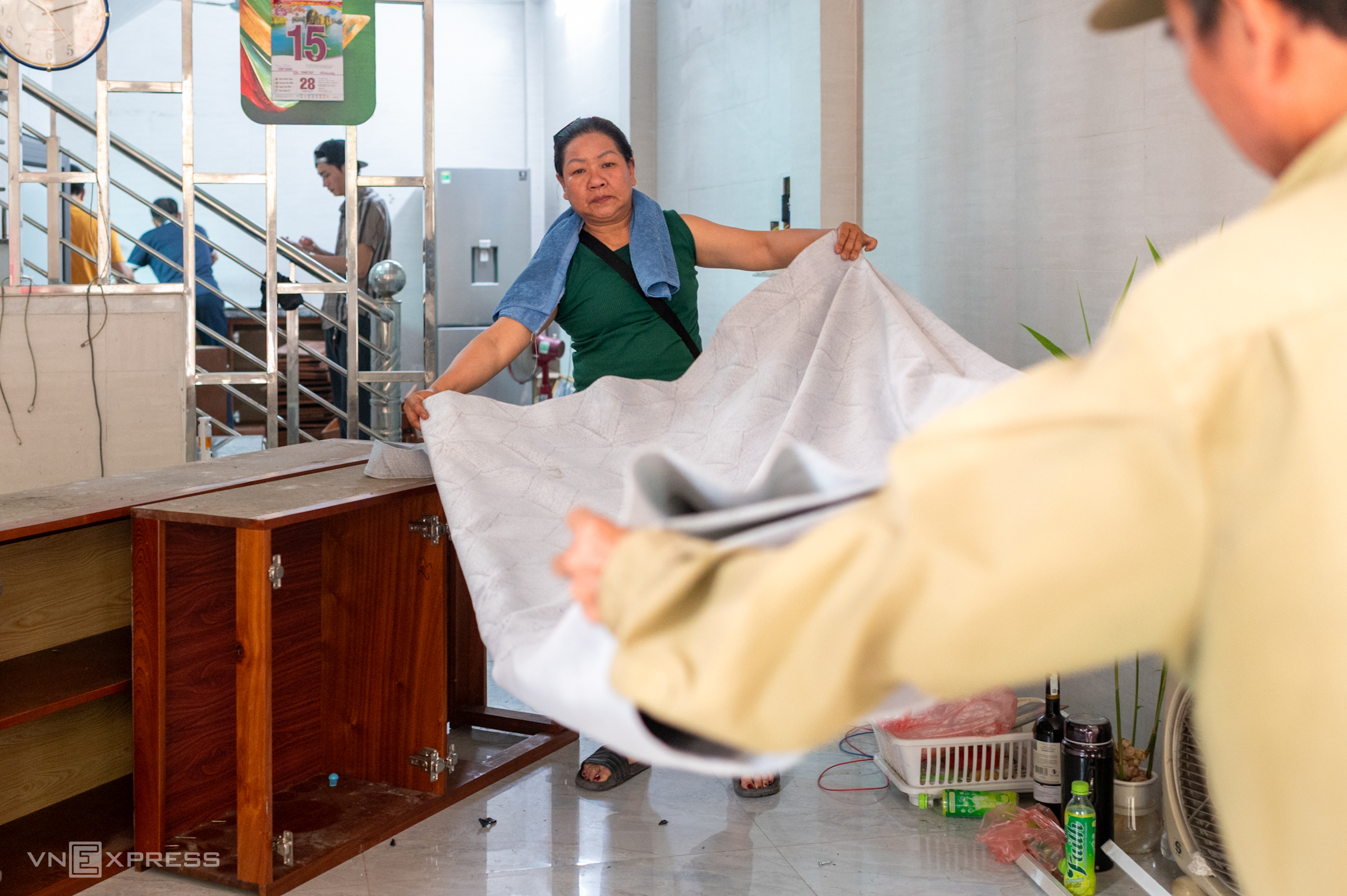Busy moving belongings to their rented place, Tran Phi Bang and Nguyen Thi Nguyen said their family was small and had to rely on relatives for assistance with dismantling and transport. "Although we just drew lots for resettlement land and haven't seen it yet, the family is still strictly complying with the city's relocation request," said Nguyen.