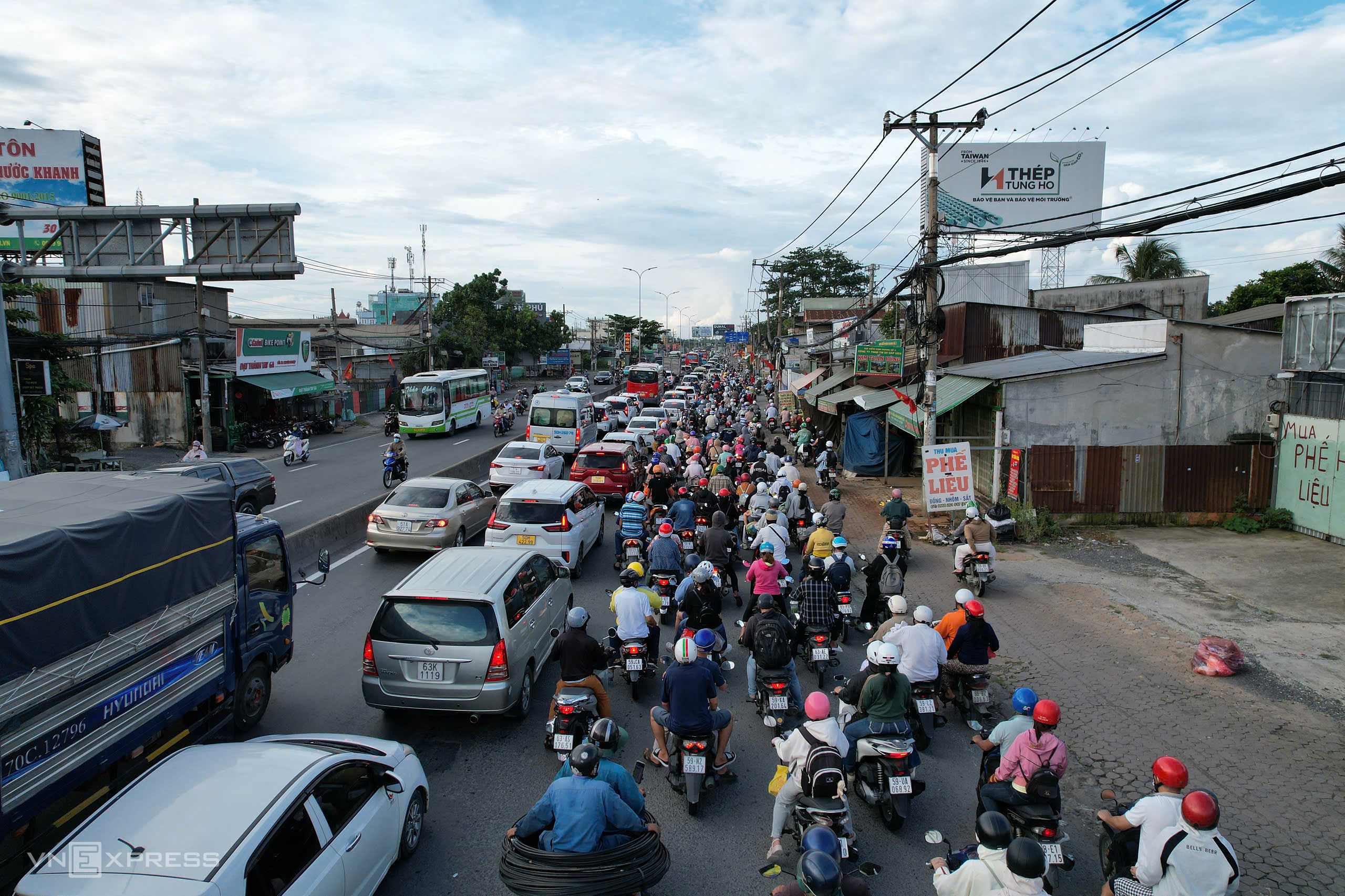 As evening approached, the number of people returning to Ho Chi Minh City for work and study increased, causing a roughly 2 km stretch of National Highway 1 through the former Binh Chanh district to become gridlocked. Authorities implemented traffic management measures and adjusted traffic signal timings to alleviate the congestion.