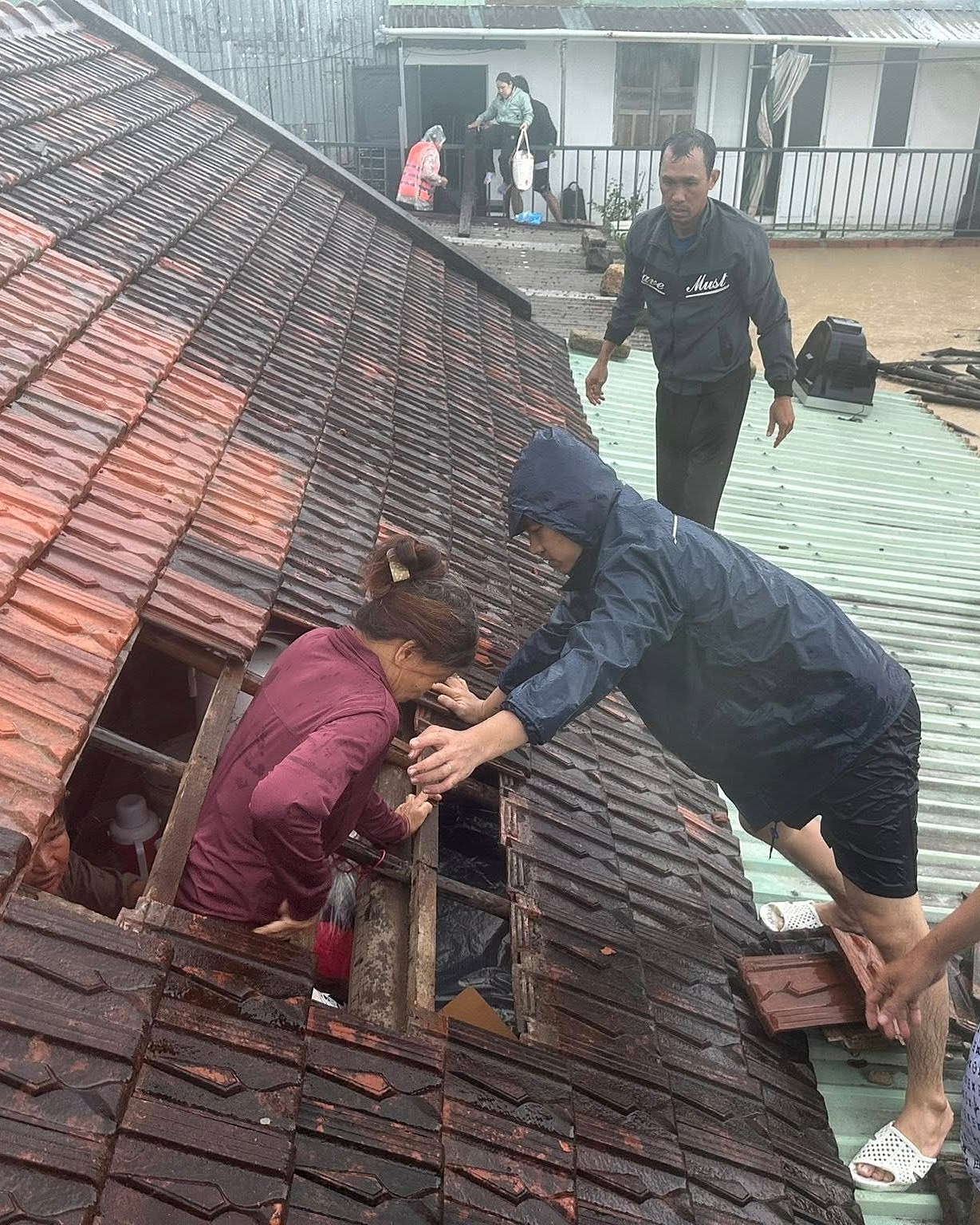 Rescue teams in Quy Nhon removed a roof to evacuate residents on the morning of 19/11. |