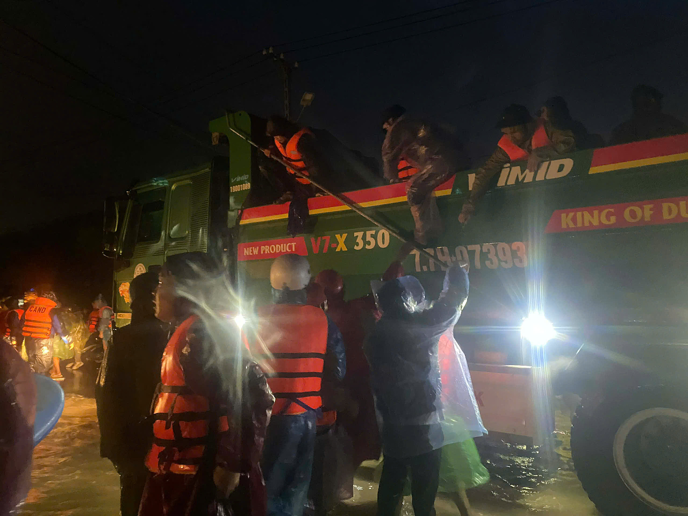 Rescue forces transport Quy Nhon residents to safe shelters via specialized vehicles. *Nguyen Quan*. |