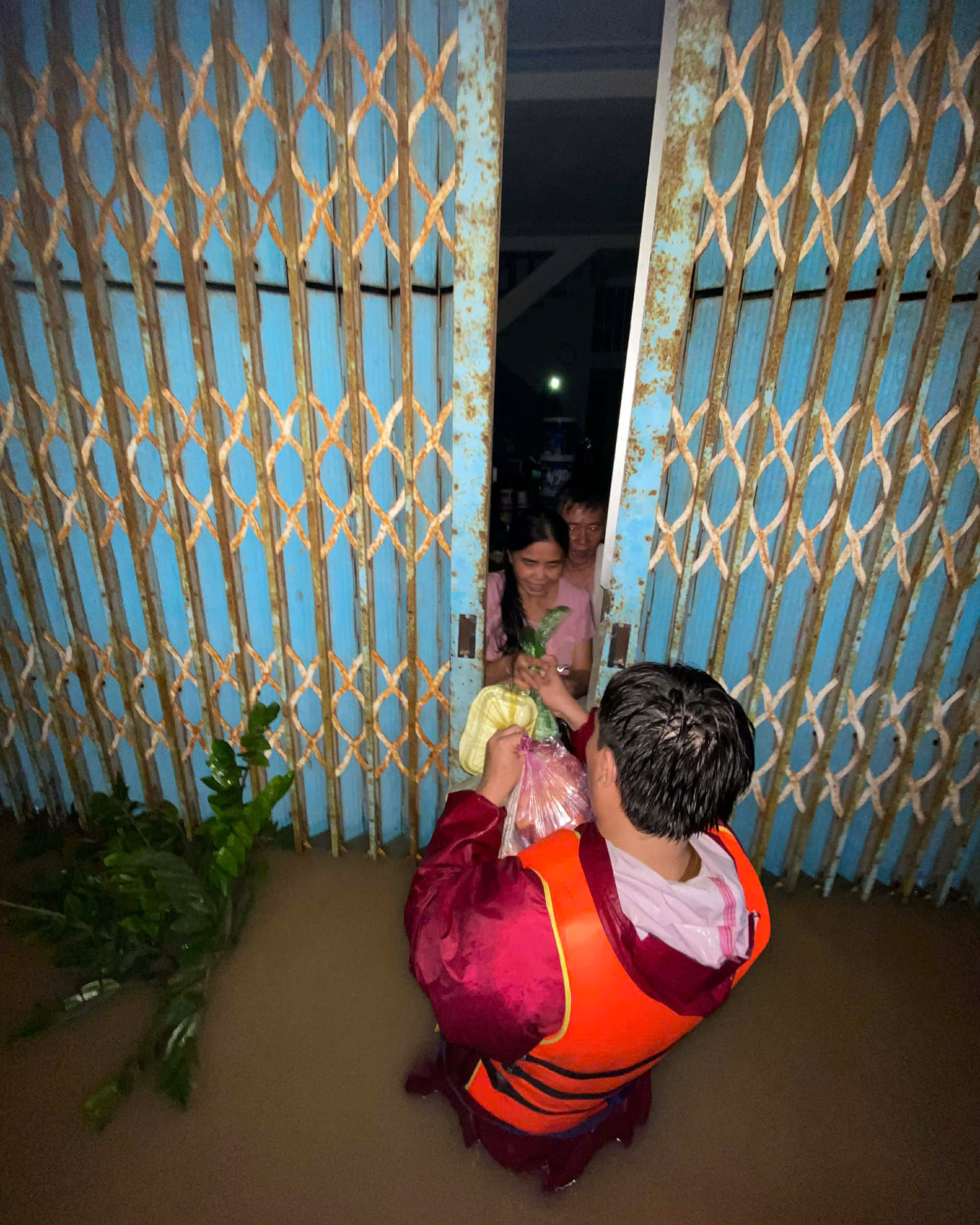 Relief teams deliver food supplies to residents in deeply flooded Quy Nhon Dong ward on the evening of 19/11. *Nguyen Quan*. |