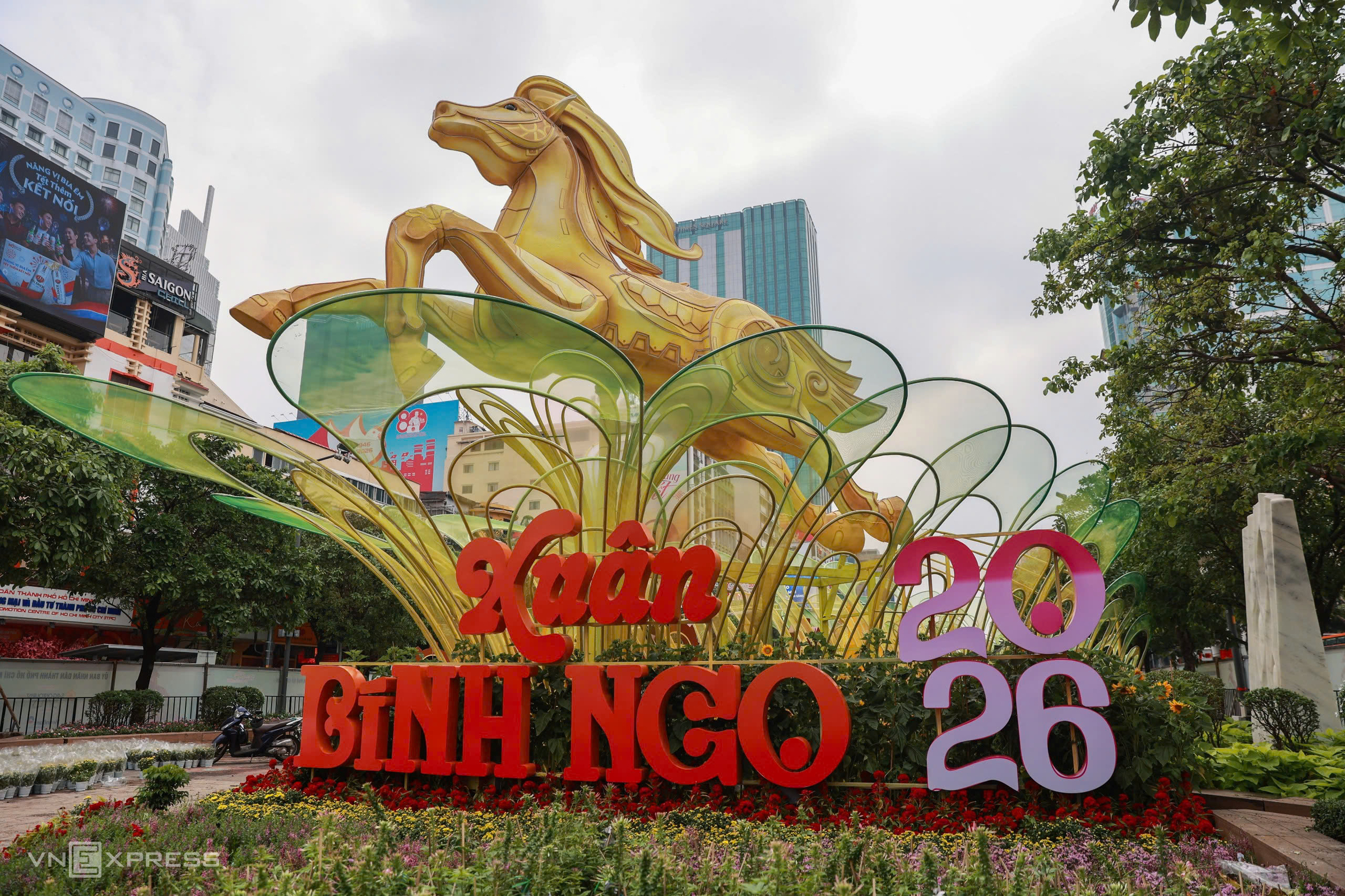 The horse mascot at the beginning of Nguyen Hue flower street, near the Ho Chi Minh City People's Committee headquarters, will be retained until 22/3. Quynh Tran