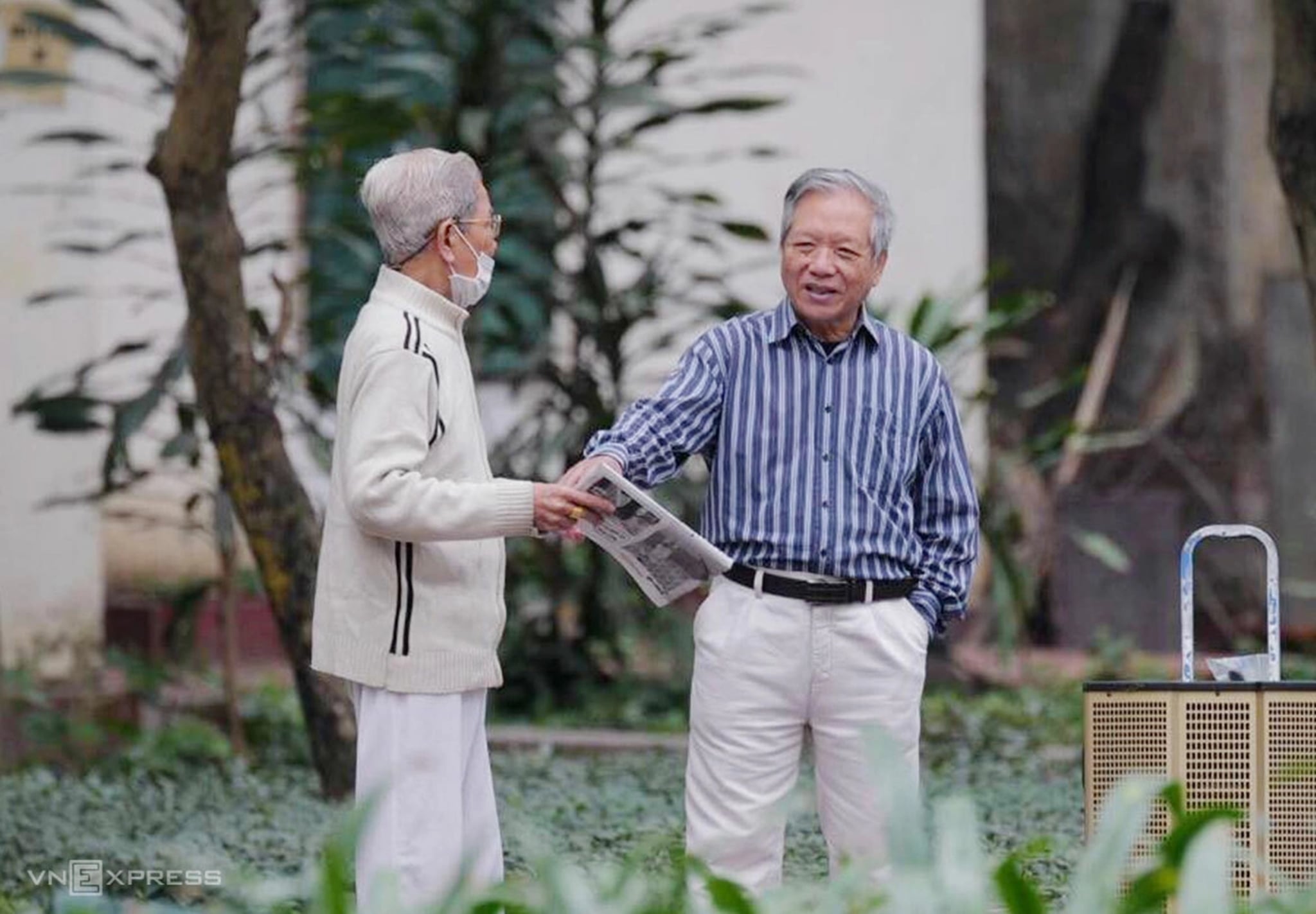 Hanoi seniors relax at Thanh Cong flower garden. *Photo: Ngoc Thanh*