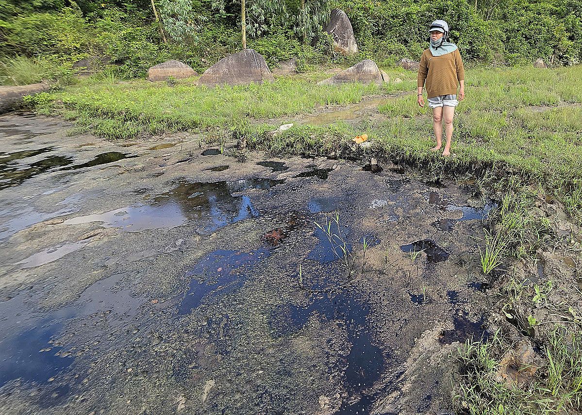 According to My, this issue began during the flood season in 11/2025. High water levels initially prevented cultivation, but as the water receded, the oil became visible and has since spread.