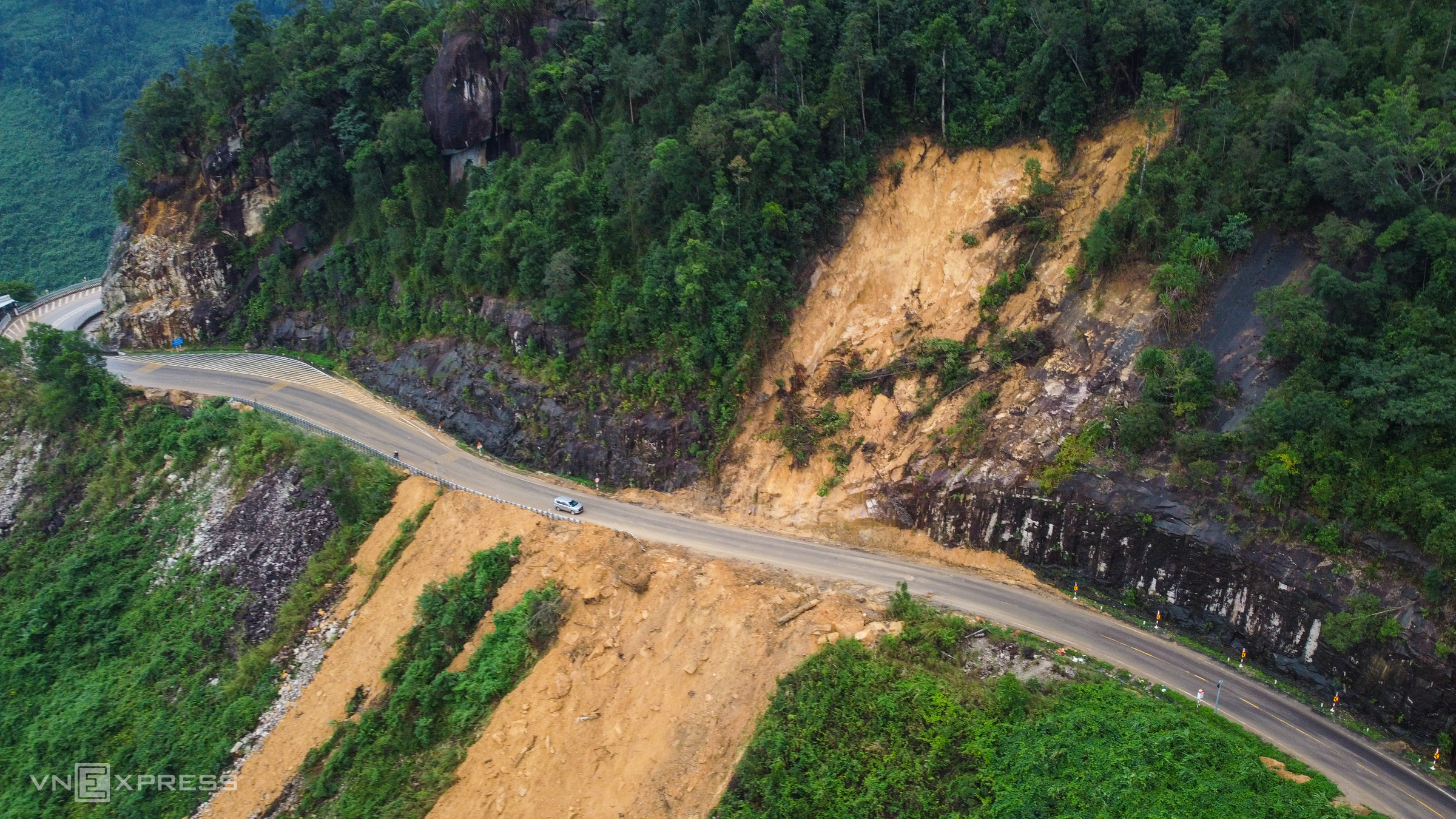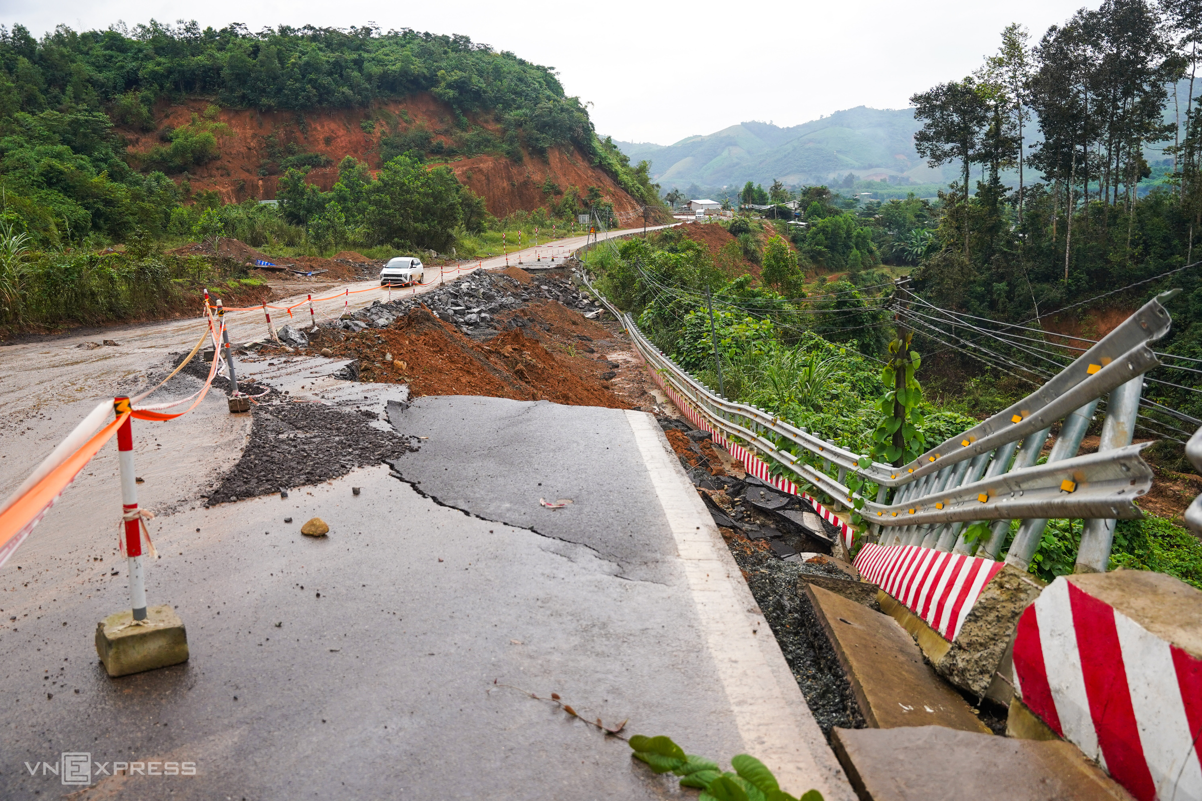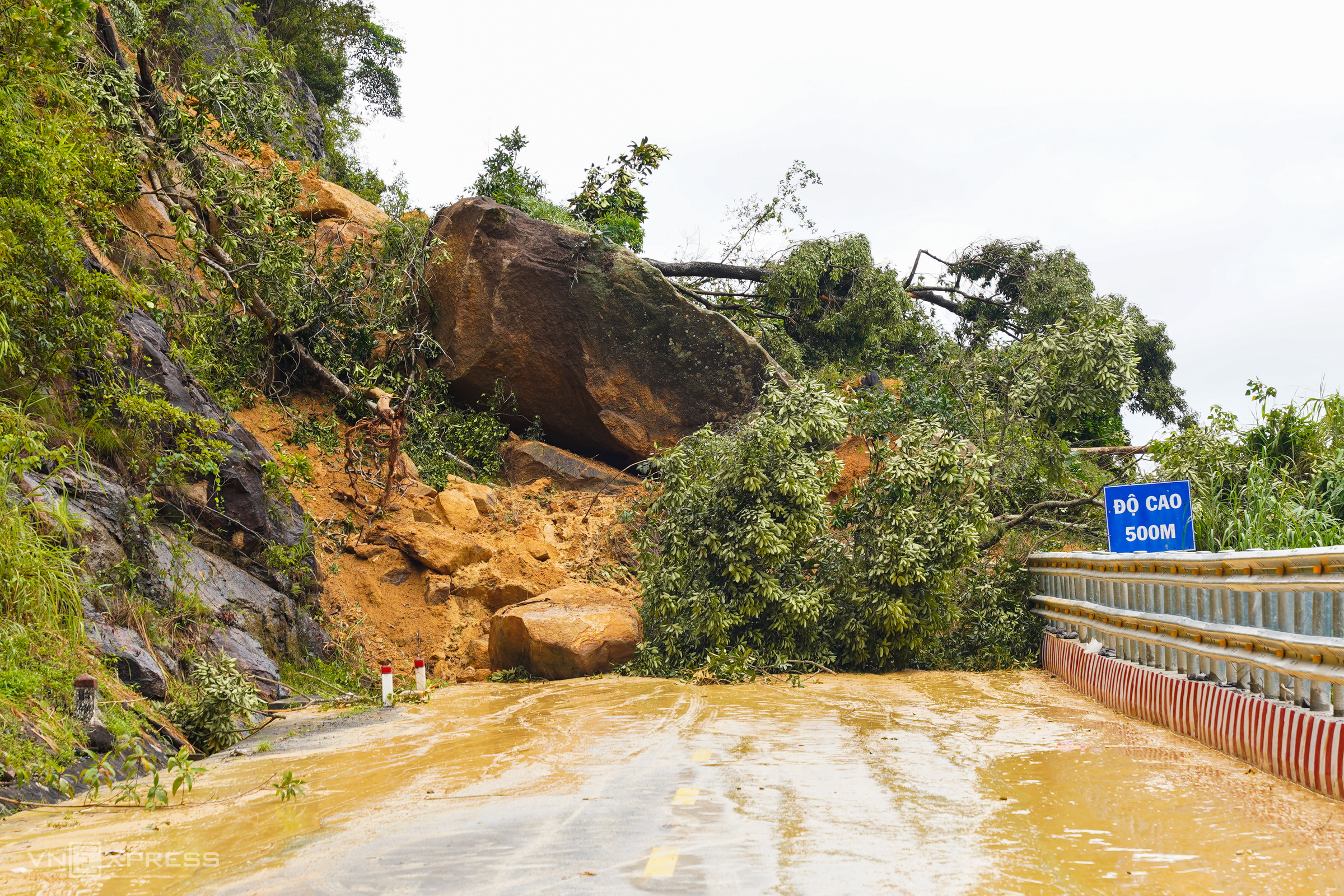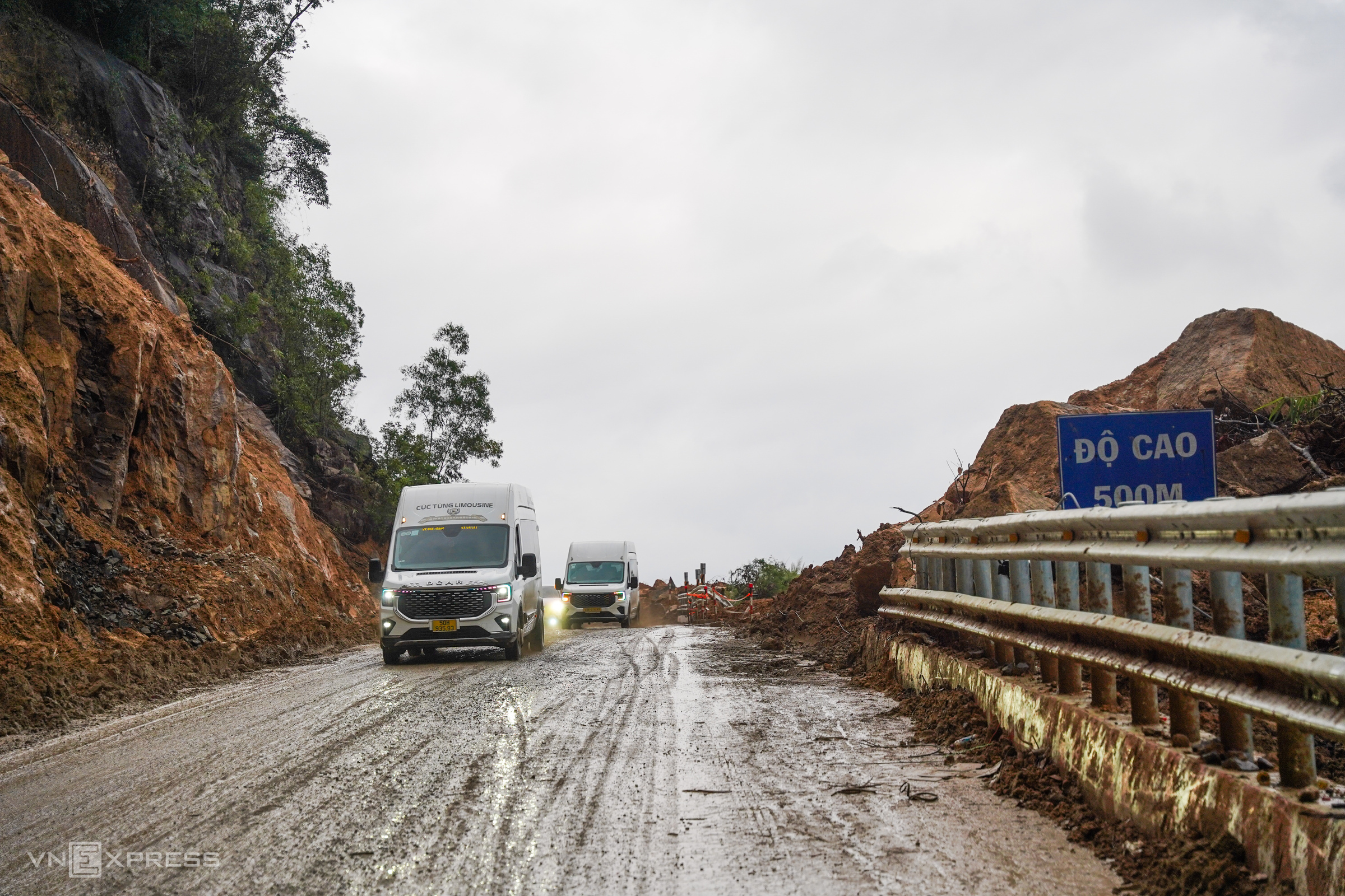 A section of the pass at an elevation of 500 m, which previously suffered a landslide blocking the road and was near the site of an accident that killed 6 people on the night of 16/11/2024, has been cleared, allowing two-lane traffic. However, during heavy rains, mud and soil still spill onto the road, posing safety risks.