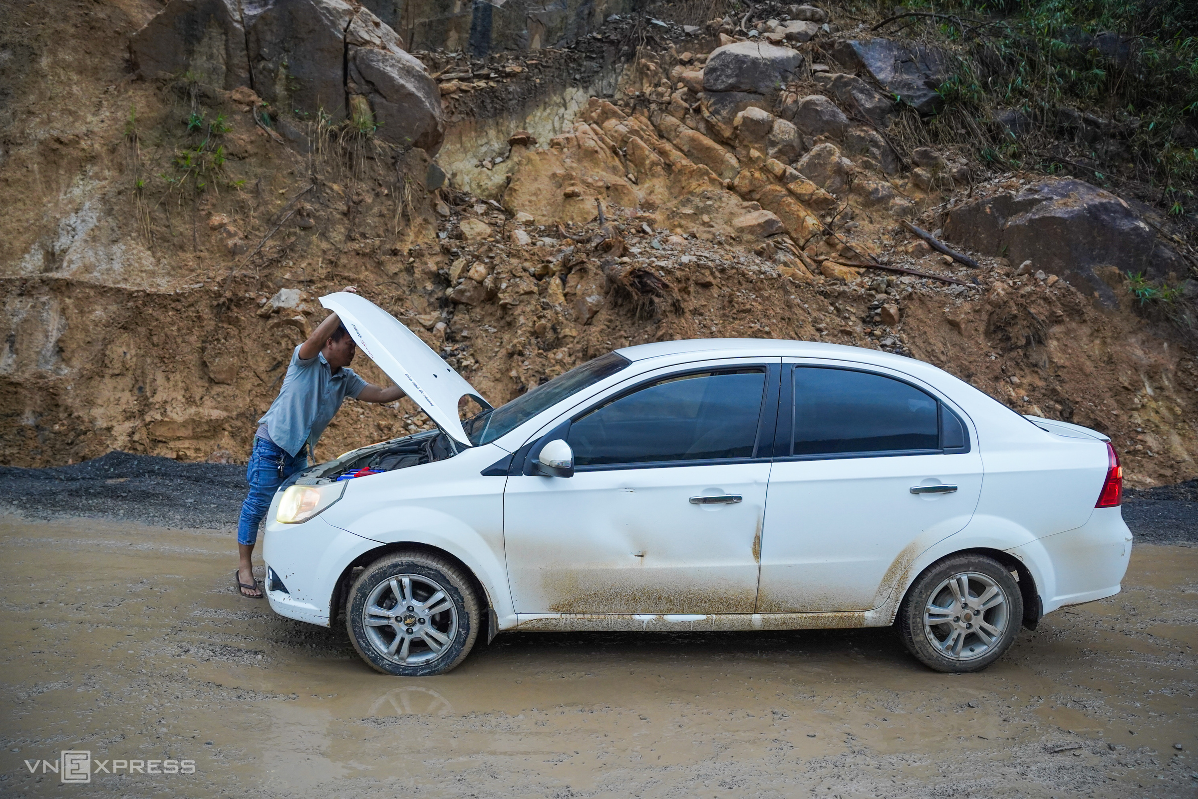 Even with the pass open, travelers face hazards. Binh, a driver traveling a car from Nha Trang to Da Lat, experienced an engine breakdown on a slope of the pass during the late afternoon. He advised: “Luckily, I fixed it in time. Drivers should travel the pass in the morning or at noon, avoiding the late afternoon like I did, because breakdowns can be dangerous.” Many multi-ton rocks from past landslides still line the roadside, obstructing drivers’ visibility.