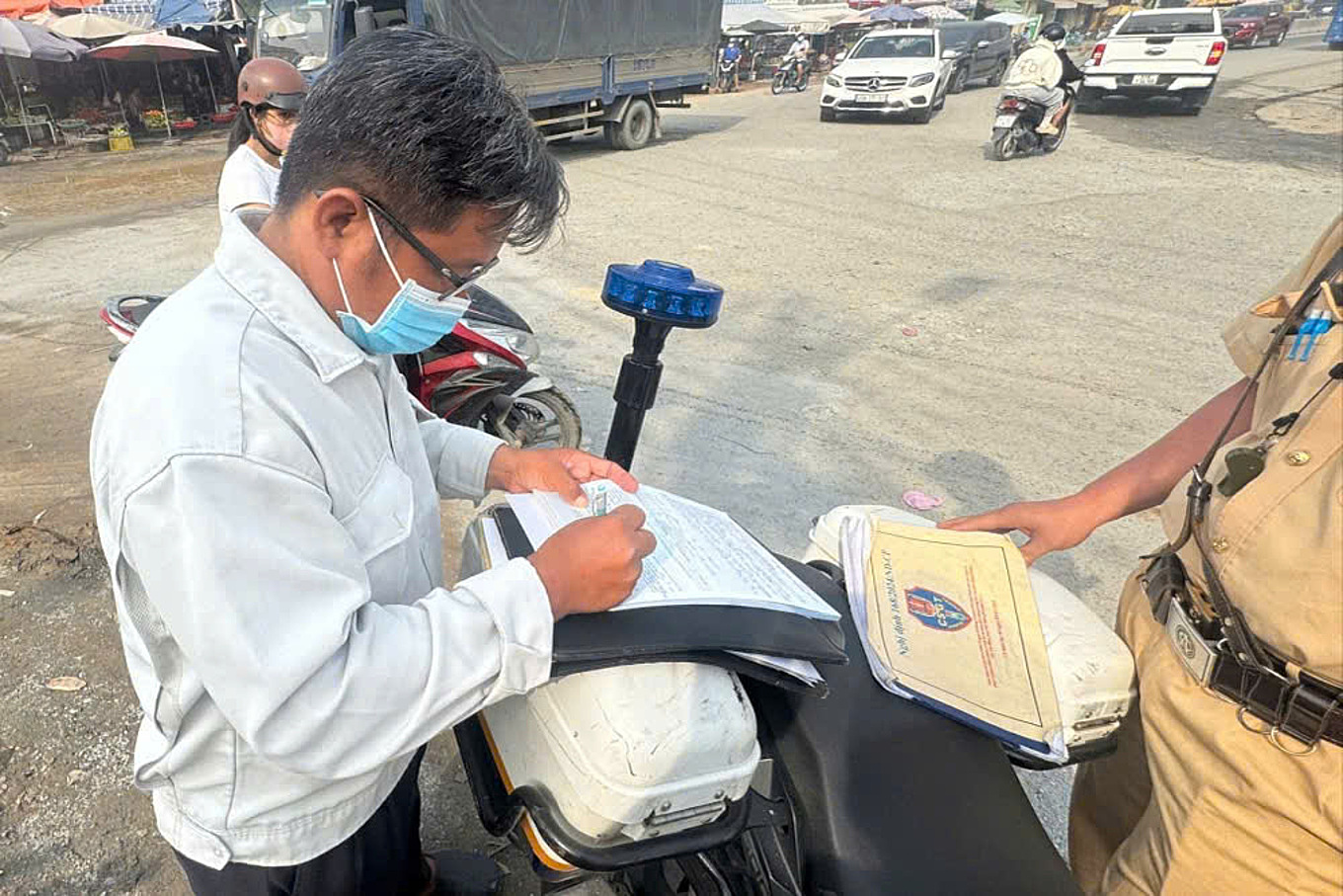 Traffic police fine a representative of the project investor, morning of 11/1. Photo: PC08 |