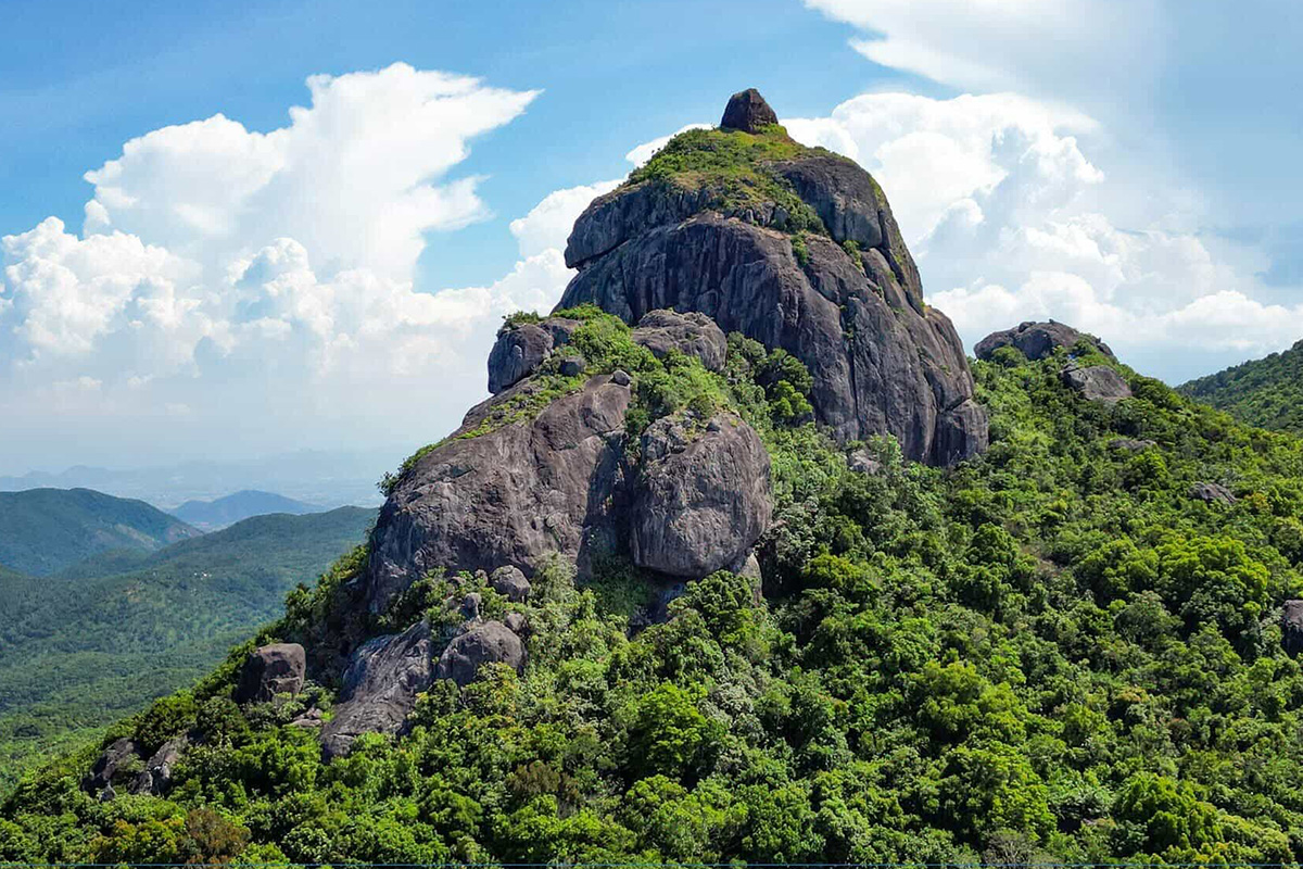 The Hon Chuong tower, located in Cat Tai commune, Phu Cat district, formerly Binh Dinh province, is named after a large rock formation on the 800-meter high Ba mountain range. Among ba prominent rocks, the highest one serves as the foundation for the tower.