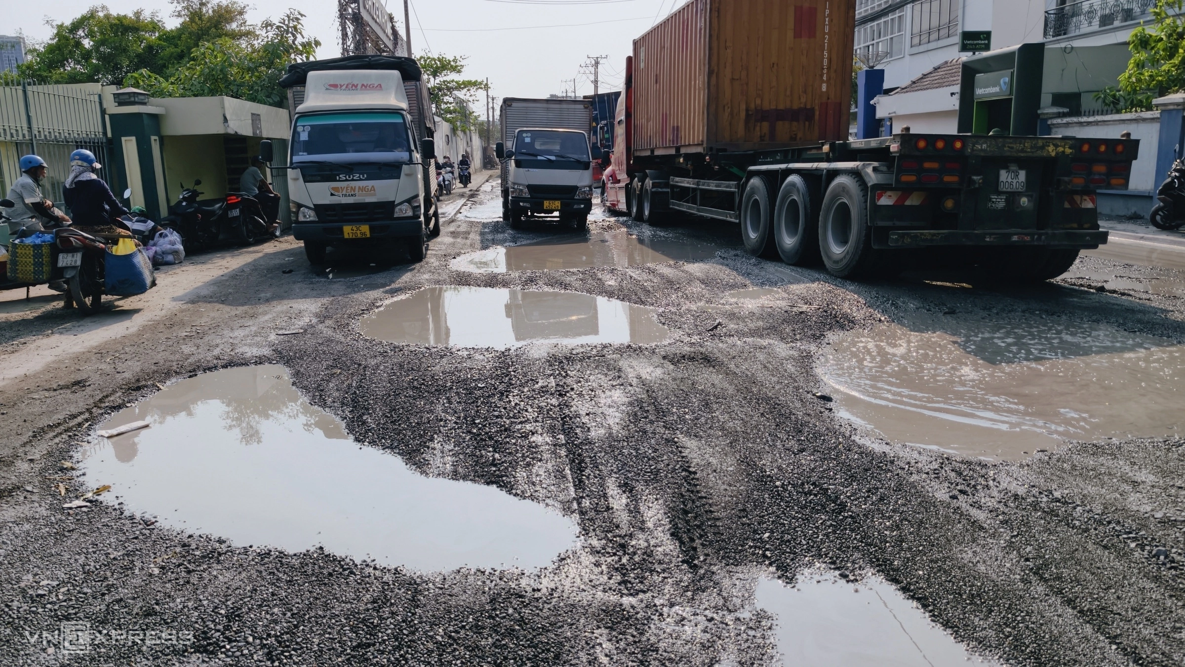 Recently, the road at the southern gateway of Ho Chi Minh City has frequently experienced congestion due to numerous vehicles falling into potholes on Ben Nghe street, in front of the port entrance and the Tan Thuan export processing zone. This area is home to many large ports, resulting in very high traffic density.