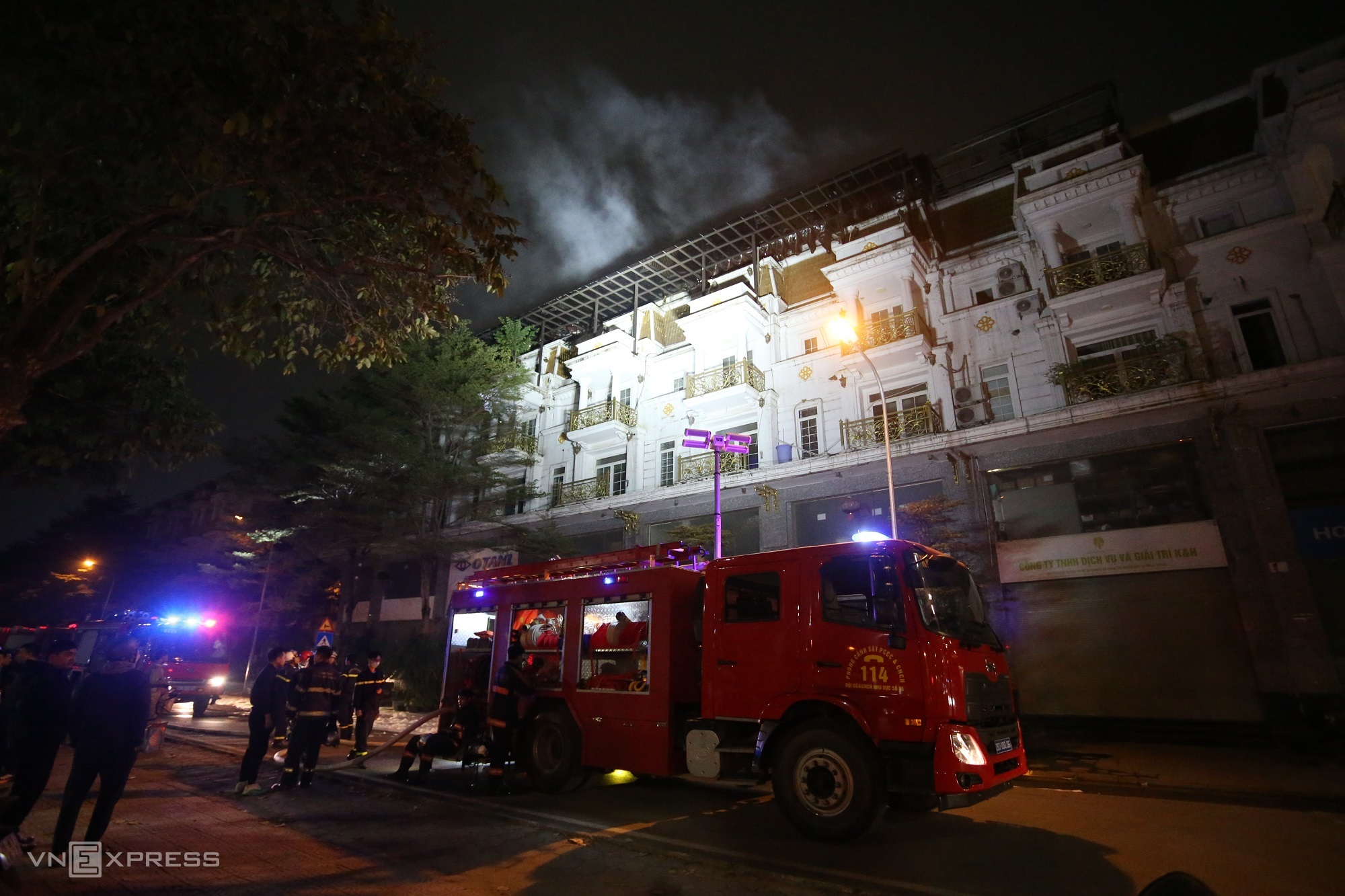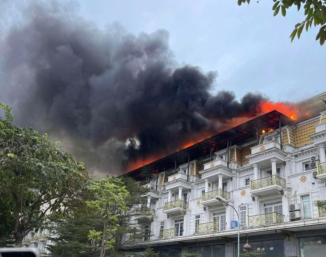 The fire began around 5 p.m. from the roof of one of the adjacent houses in Zone C of the Geleximco urban area, located on Le Trong Tan street in Duong Noi ward.
