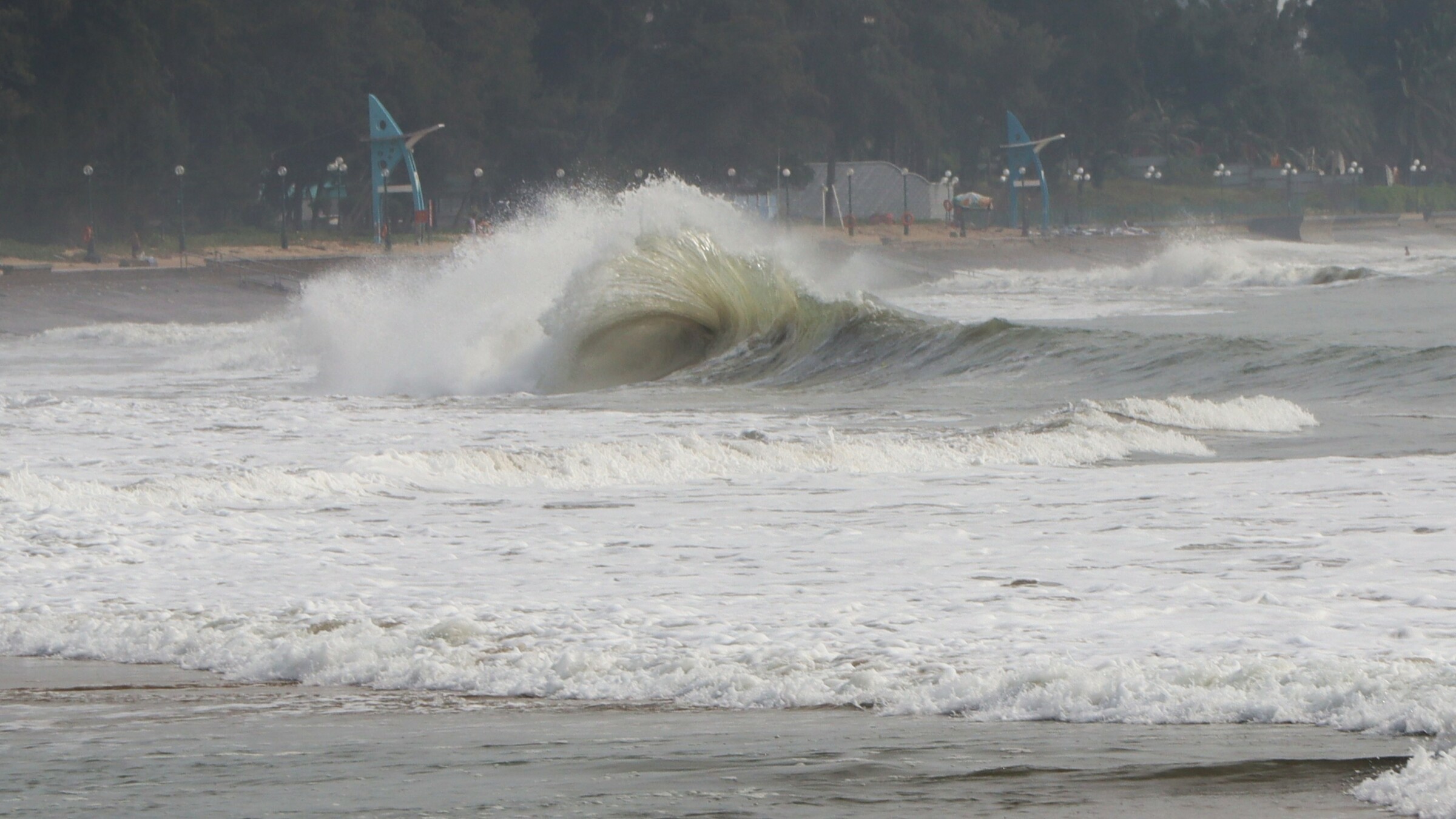 Phan Thiet beach experiences large waves due to the impact of Typhoon Koto. Photo: Chi Yeng |