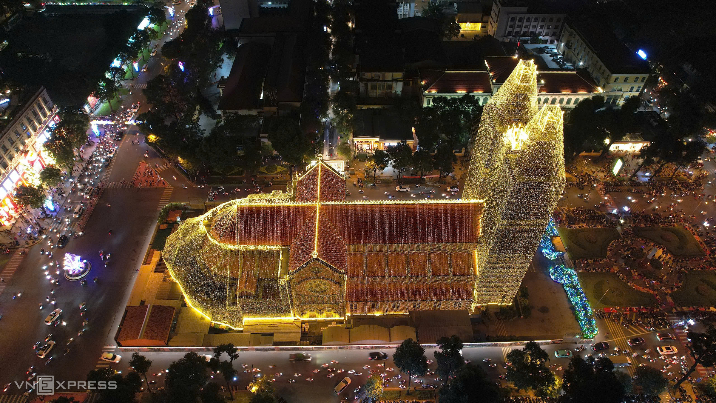 This marks the third year Saigon Notre Dame Cathedral has been adorned with lights since its restoration commenced in 2017. The system utilizes non-heat-emitting LED bulbs, protecting nearby trees and the ongoing renovation work, while also reducing operating expenses.