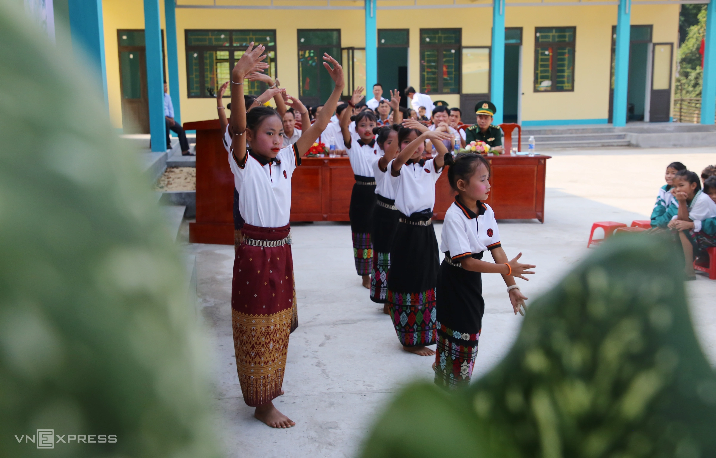 During the ceremony, A Ky school point students participated in cultural performances on the joyous day of their new school. Students also watched with interest, focusing and enthusiastically cheering for their friends. |