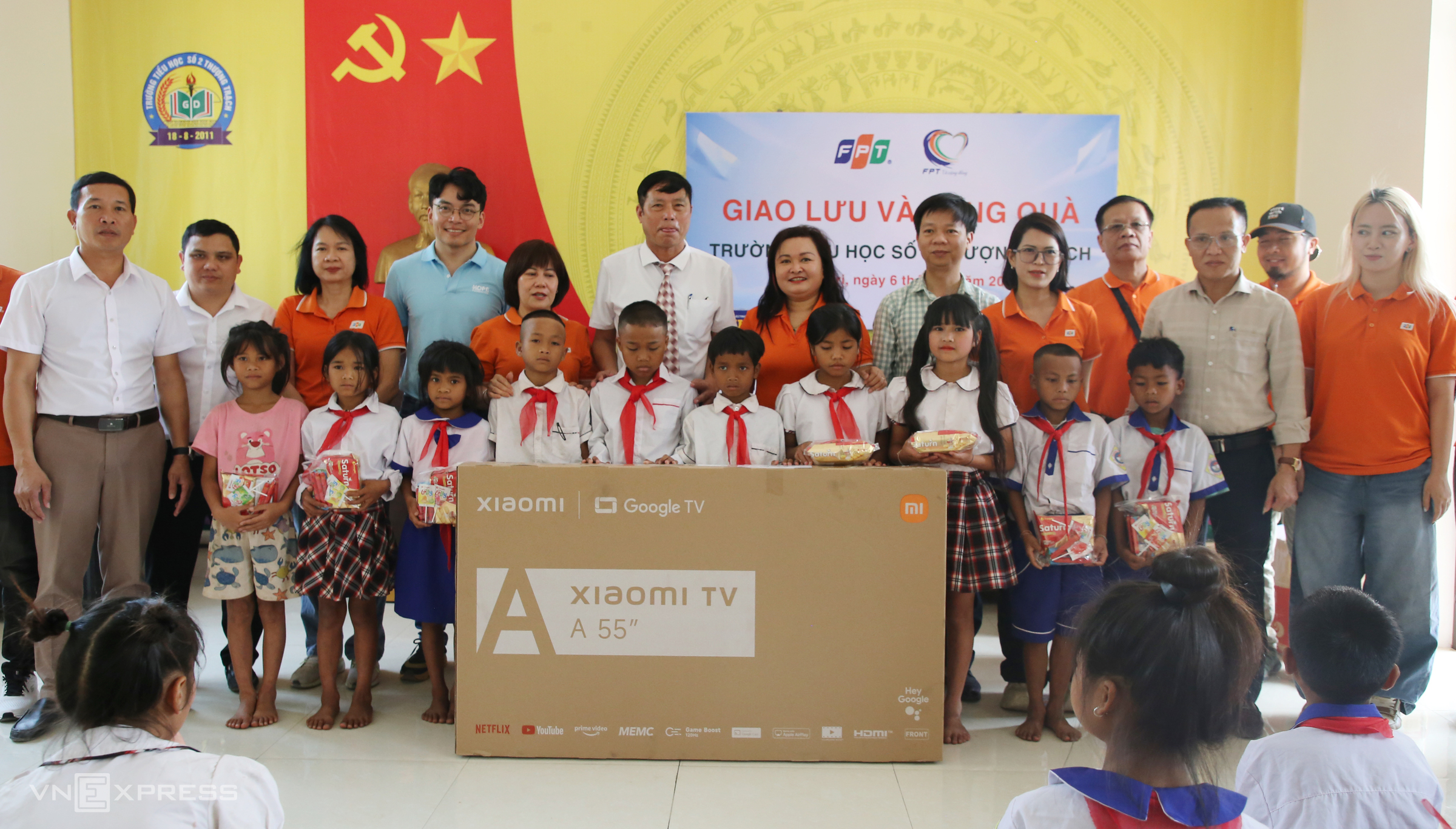 As part of the program, FPT People for Community Fund (FPT Group) donated to Thuong Trach No. 2 Primary School: 2 55-inch televisions, 2 printers, 1 projector, 6 standing fans, 30 backpacks, and 120 student gift packages, supporting teachers and students in their learning and teaching process. |