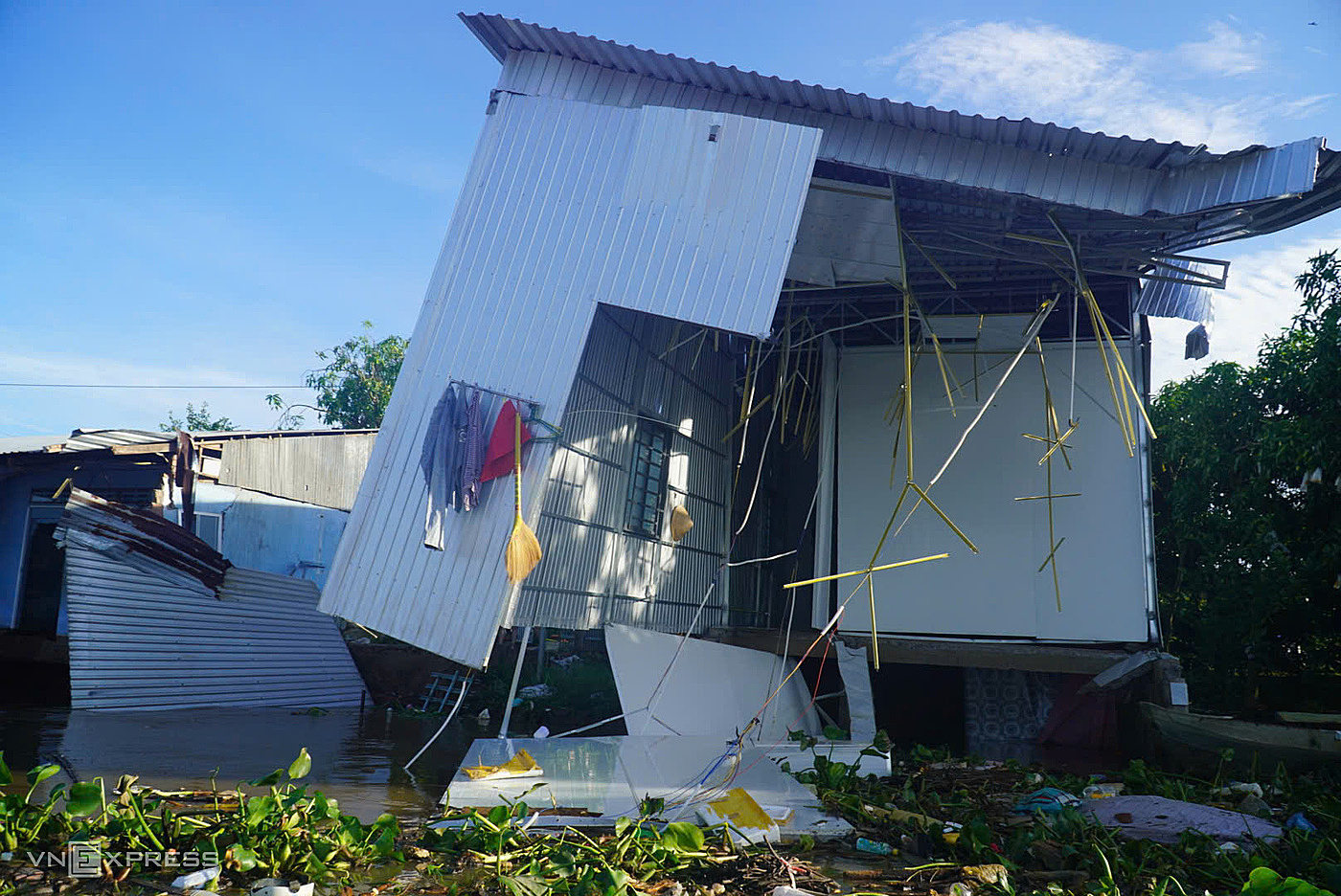 Nearby, Nguyen Van Dat’s newly built house also suffered significant damage. "Hearing the neighbors shouting, I only had time to get my wife and children out. We couldn't take anything with us," he said.