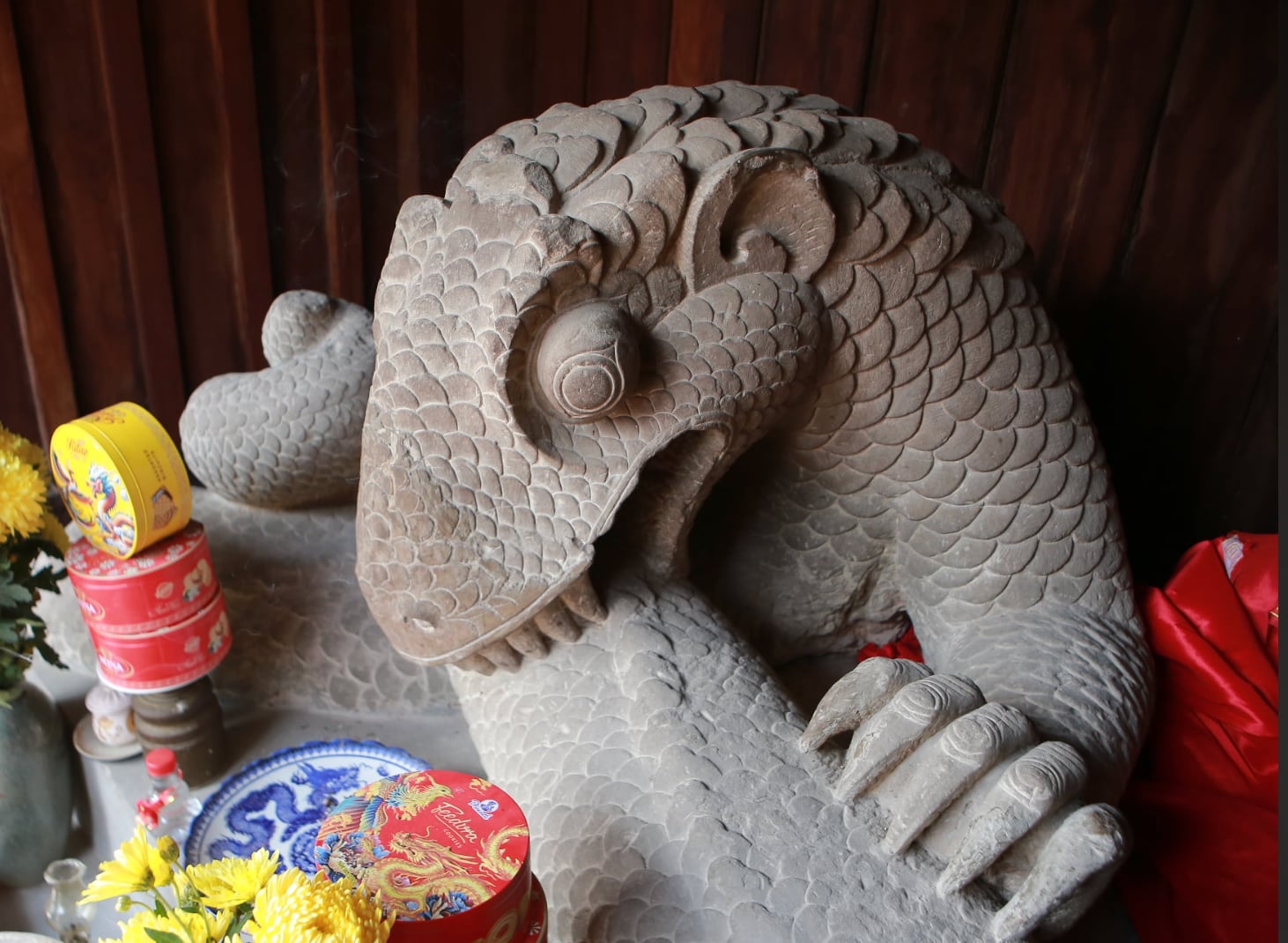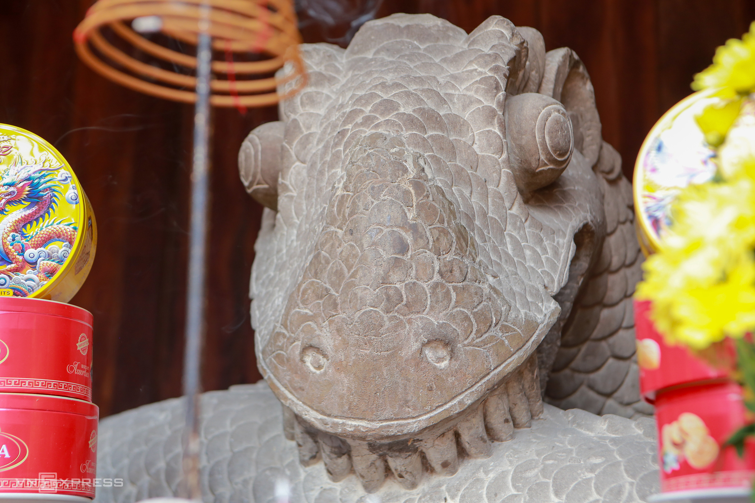 Villagers then built a small shrine for the statue and referred to it as "Mr. Dragon". In 2013, the stone dragon statue, also known as the snake god (xa than), was recognized as a national treasure. The Department of Cultural Heritage states that the snake god statue exhibits characteristics of 12th-century Ly dynasty art, including: sandstone material, robust form, and delicate, refined lines.