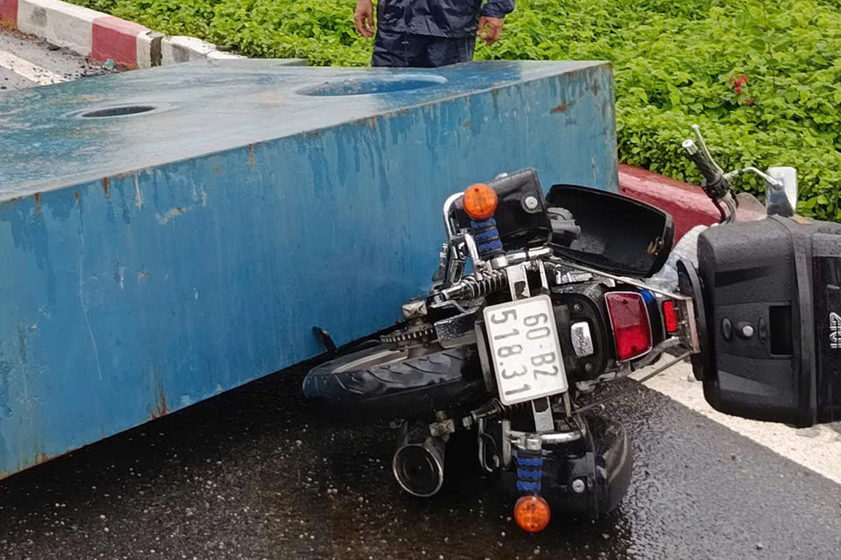 Motorcycle struck by a steel block. Photo: Minh Bang. |