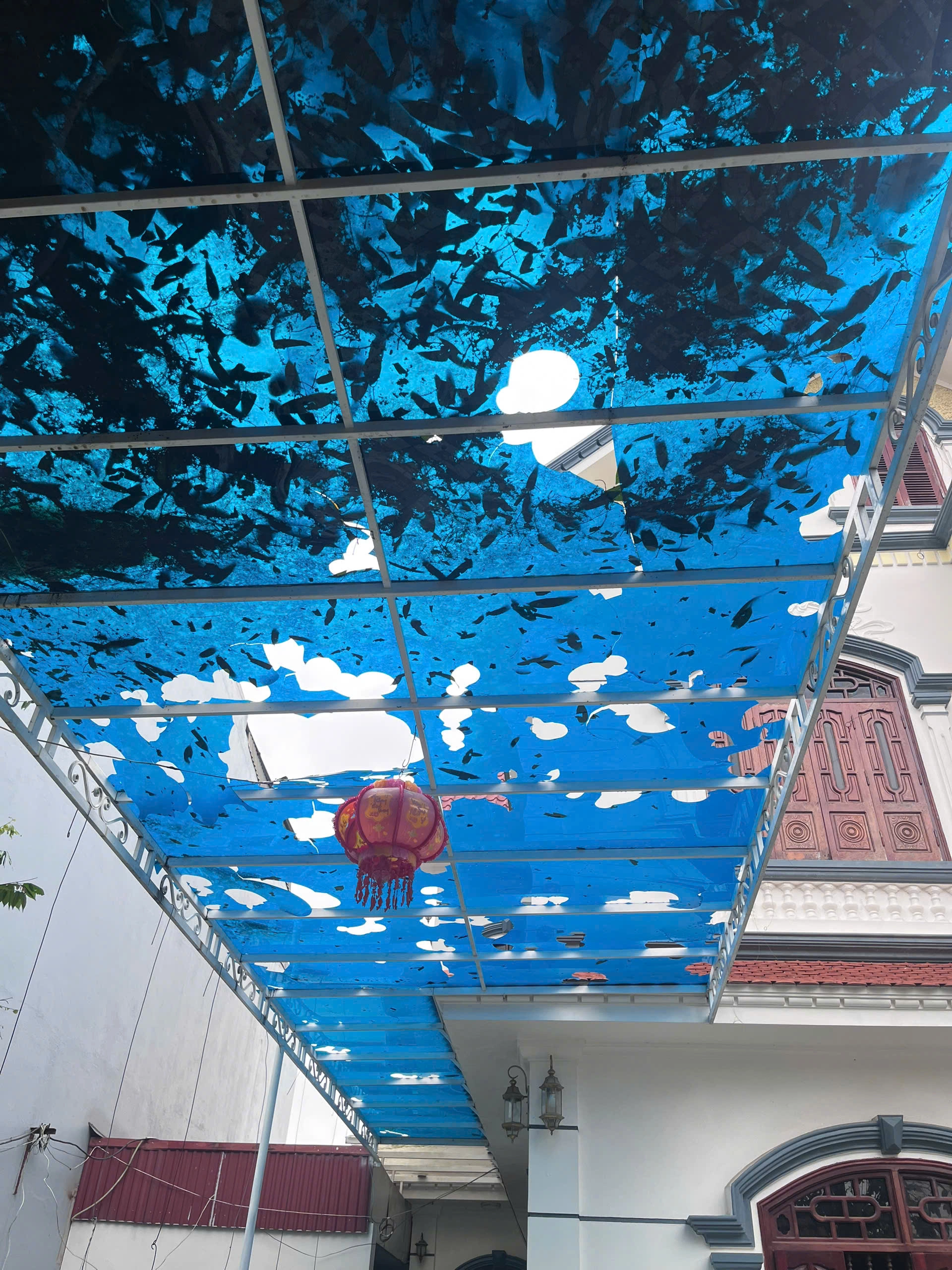 The plastic awning of a household in Ham Rong ward was riddled with holes by hailstones. *Photo: Vu Quang* |