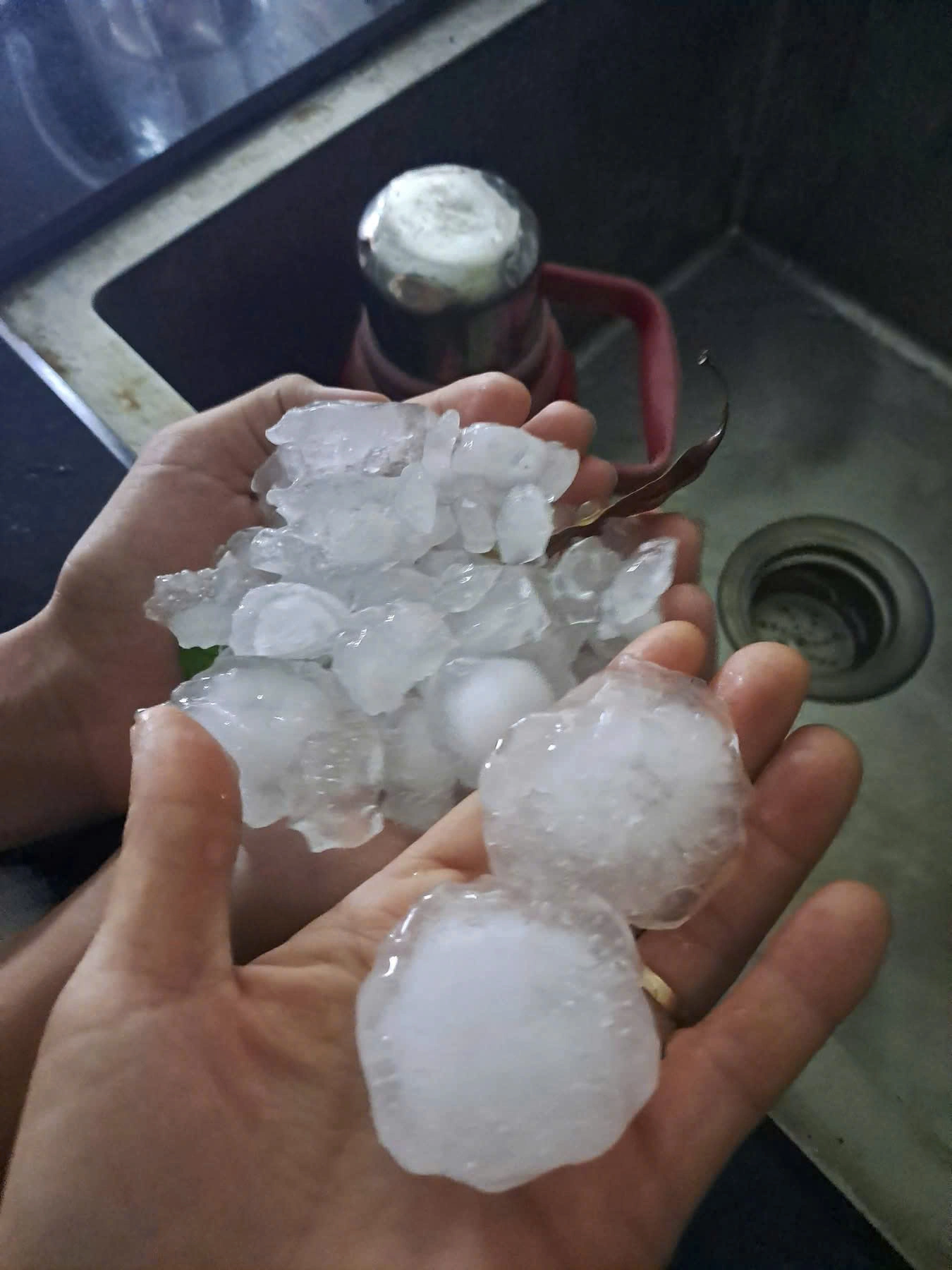 Hailstone as big as a chicken egg. *Photo: Vu Quang* |