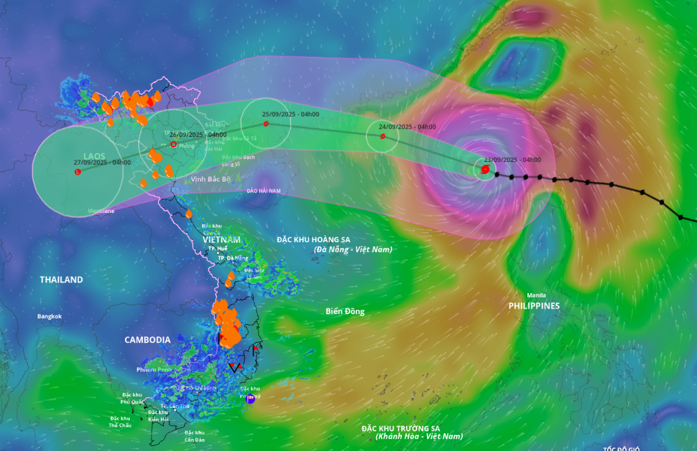 By 4 a.m. on 25/9, the typhoon will be over southern Guangzhou province (China), with maximum sustained winds of category 12 and gusts of 15, maintaining its course and speed. The typhoon will then rapidly weaken into a tropical depression, and by 4 a.m. on 26/9, it will be over northern Vietnam, with maximum sustained winds of category 6 and gusts of 8.